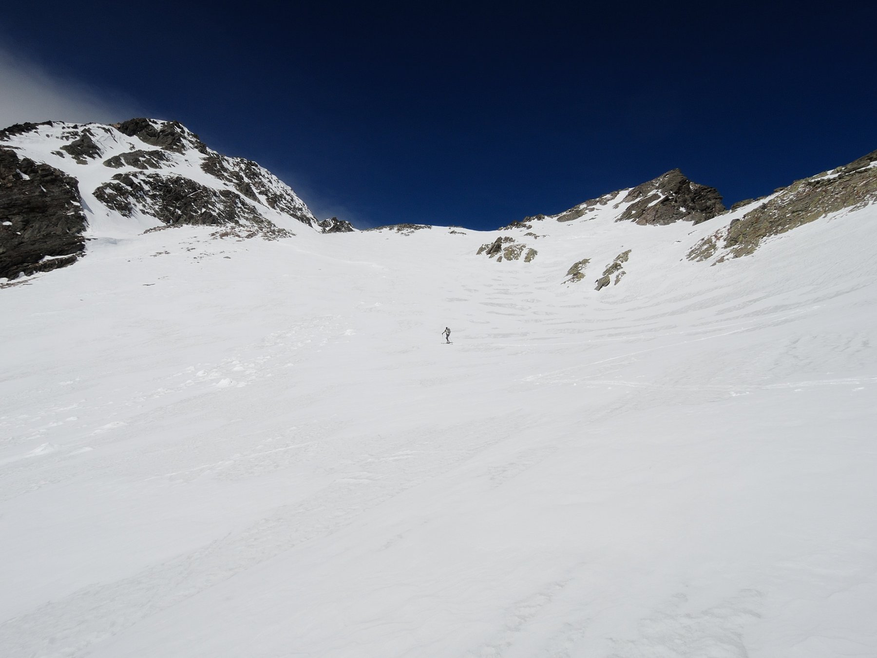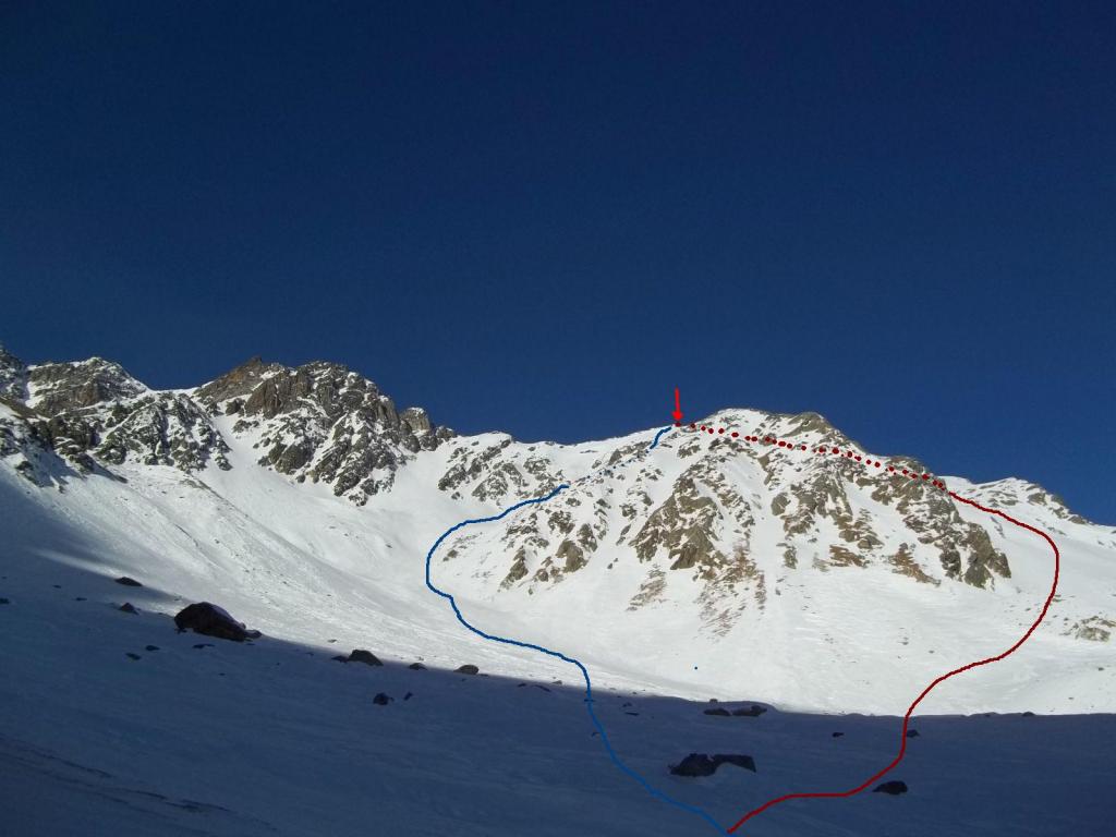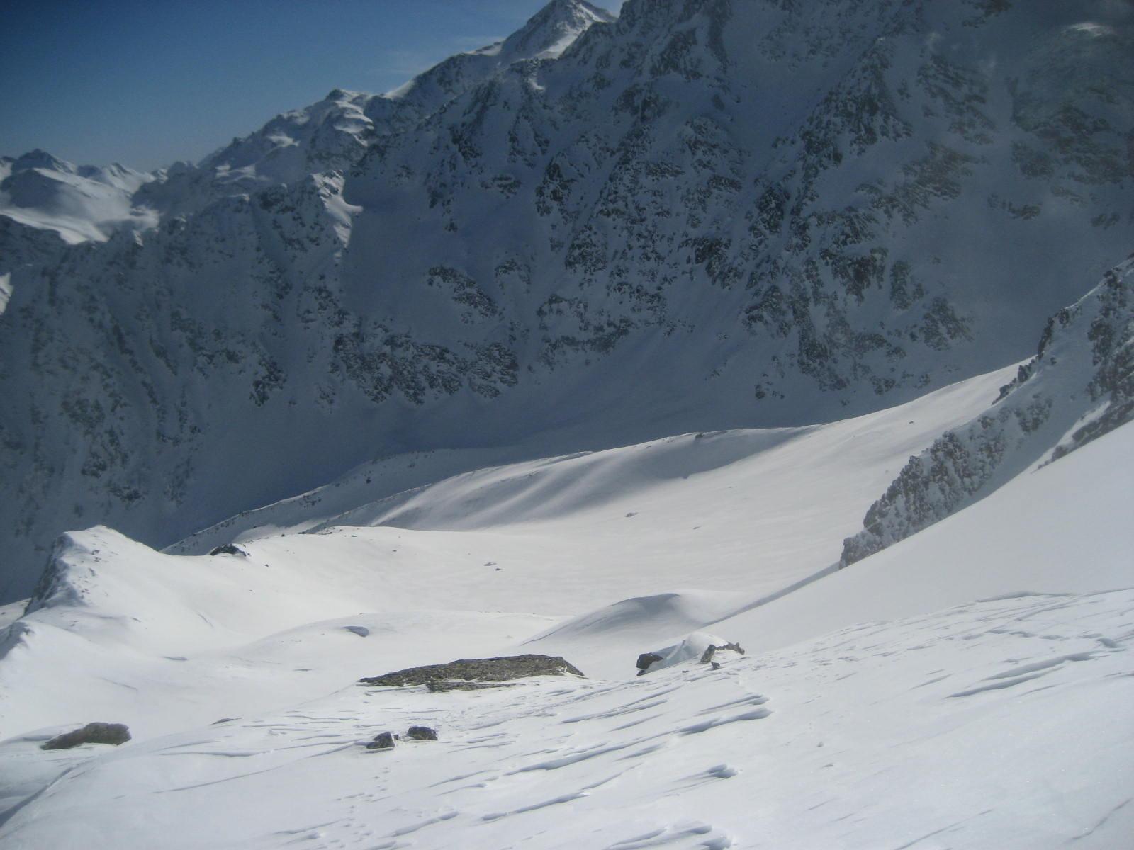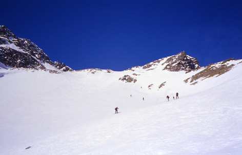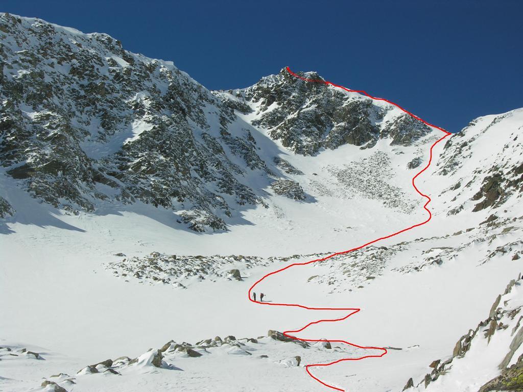 A quota 2100 m circa deviare a destra in dir S-E entrando nella ampia conca di Griesserna da risalire fino a trovarsi ai piedi di un ripido pendio sovrastato da alcune roccette, superato il quale ci si trova ancora in una conchetta seguita ancora da un ripido pendio che porta ad un colle.