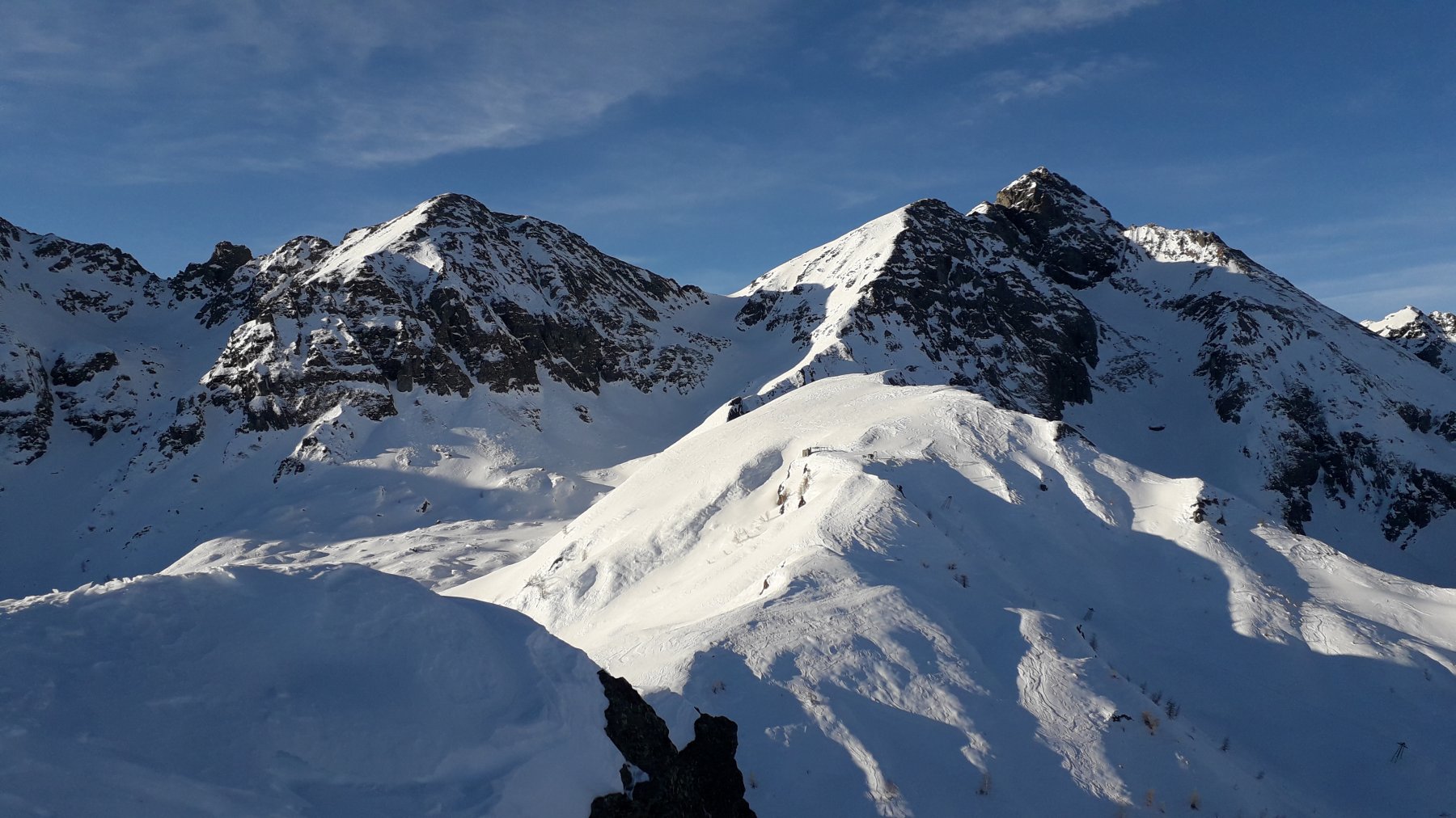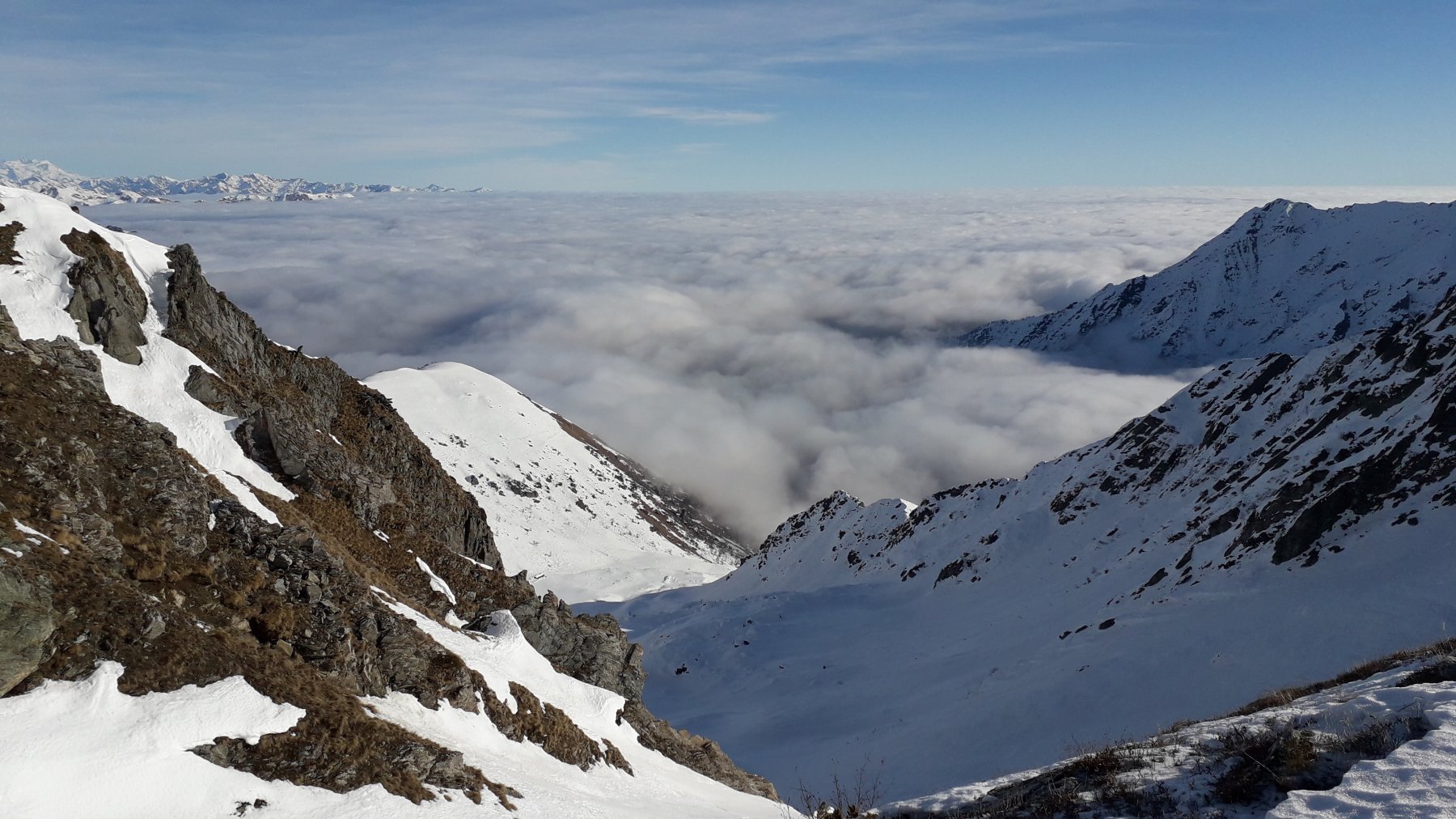 Pian Benot – colle Pala Rusà -discesa nel piano sotto il colle della Portia – risalita alla Portia – discesa per circa 200 m e risalita al Grifone (oppure per cresta, utili i ramponi se ventata e dura, con saliscendi al Grifone).