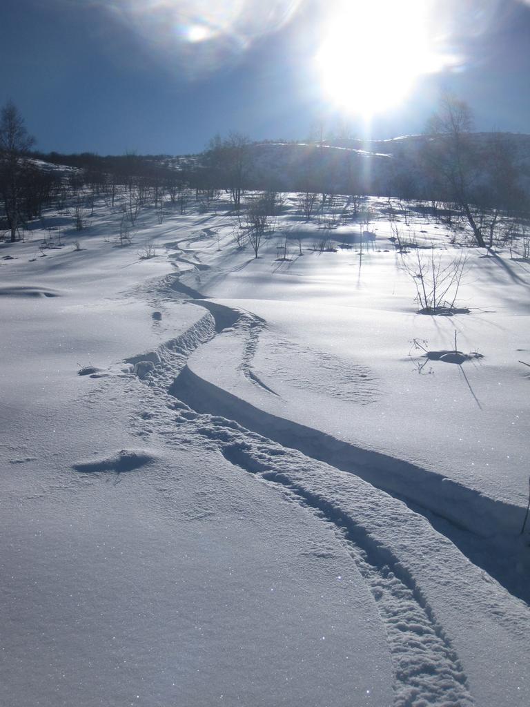 Arrivato solo al Trucet (quota 1.734) perchè ero solo e non ce la facevo più a battere sprofondando fino al ginocchio. Credo che si arrivi in sicurezza fino alla dorsale est a quota 2.044 mt, anche se ogni tanto si sente qualche gonfia. Da lì in su occorre valutare perchè non c’è più bosco, ma la pendenza diminuisce decisamente. Ottima sciata fino alle grange Granè. Poi un pezzo di strada e poi di nuovo bella sciata nel rado bosco di faggi. Se andate portate pazienza per la traccia di salita che da quota 1600 a quota 1700 è un po’ disordinata ma ero alla ricerca di una pietra per fermarmi. Anche in discesa conviene abbandonare la strada solo dove i faggi sono grandi, io l’ho abbandonata prima ma il bosco e troppo fitto.