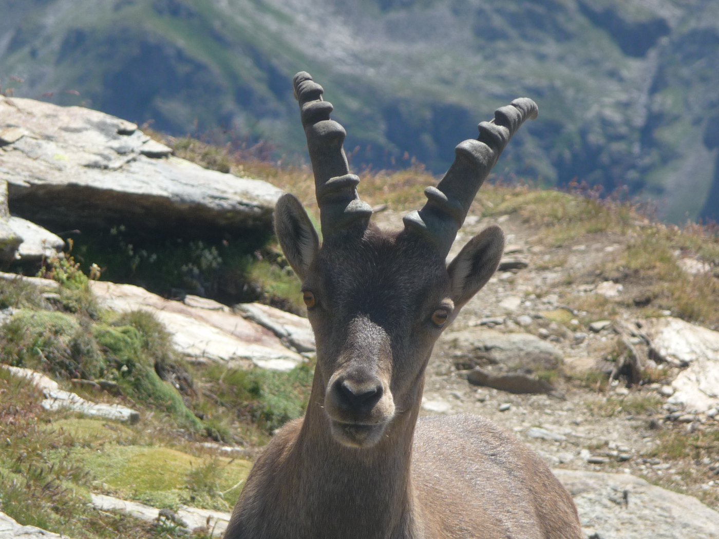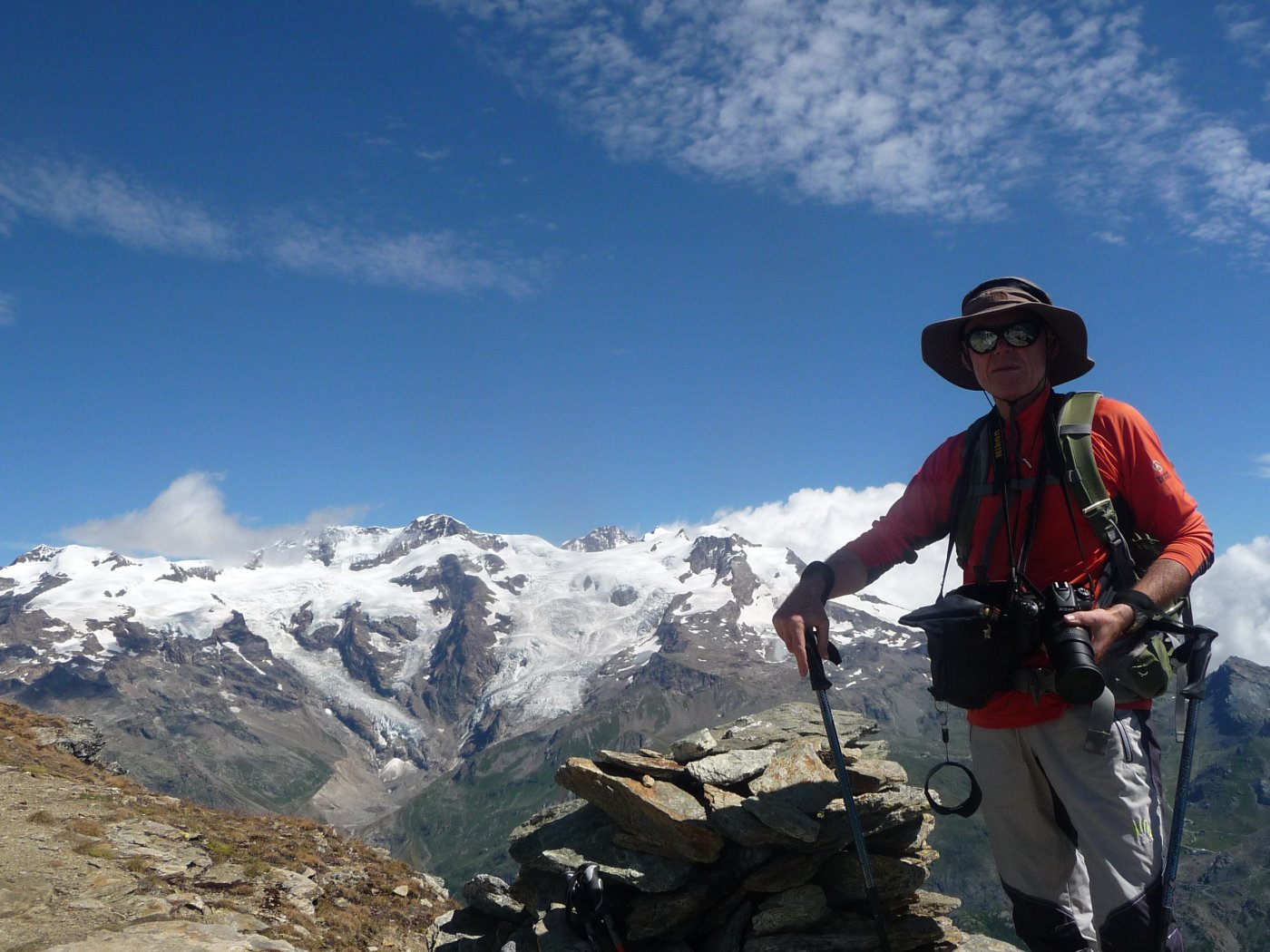 Diecimilaottocentosettantadue piedi in una giornata di ferie ben spesa: il Rosa, il Bianco, il GranPa non si sono mai negati, mentre il timido Cervino….Gita con buon dsl e sviluppo, con un ottimo sentiero che all’andata non ti fa sentire la fatica; dopo la breve digressione al bivacco e salita al Pinter si comincia…..dal colletto un primo breve tratto (II) attrezzato con catene, poi una larga, ma esposta cengia lunga alcune decine di metri ed infine un ultimo tratto attrezzato con cavo d’acciaio per diversi metri: tutto ciò è classificato EE, ma forse la F sarebbe più appropriata….