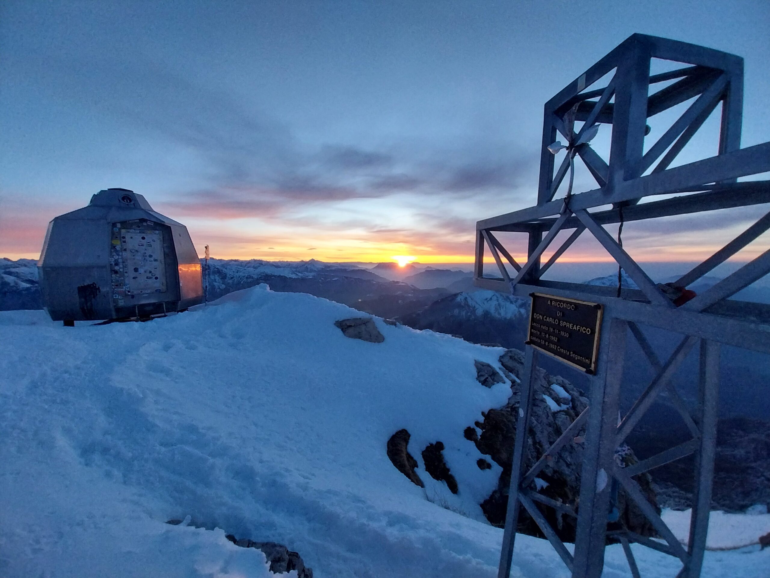 Salito il ramo di sinistra, buona copertura nevosa ma neve un po’ sfondosa nei tratti più verticali. Poca neve all’uscita e Cermenati abbastanza secca, soprattutto nella parte bassa. Oggi non troppo freddo e una bellissima galaverna ai Resinelli.