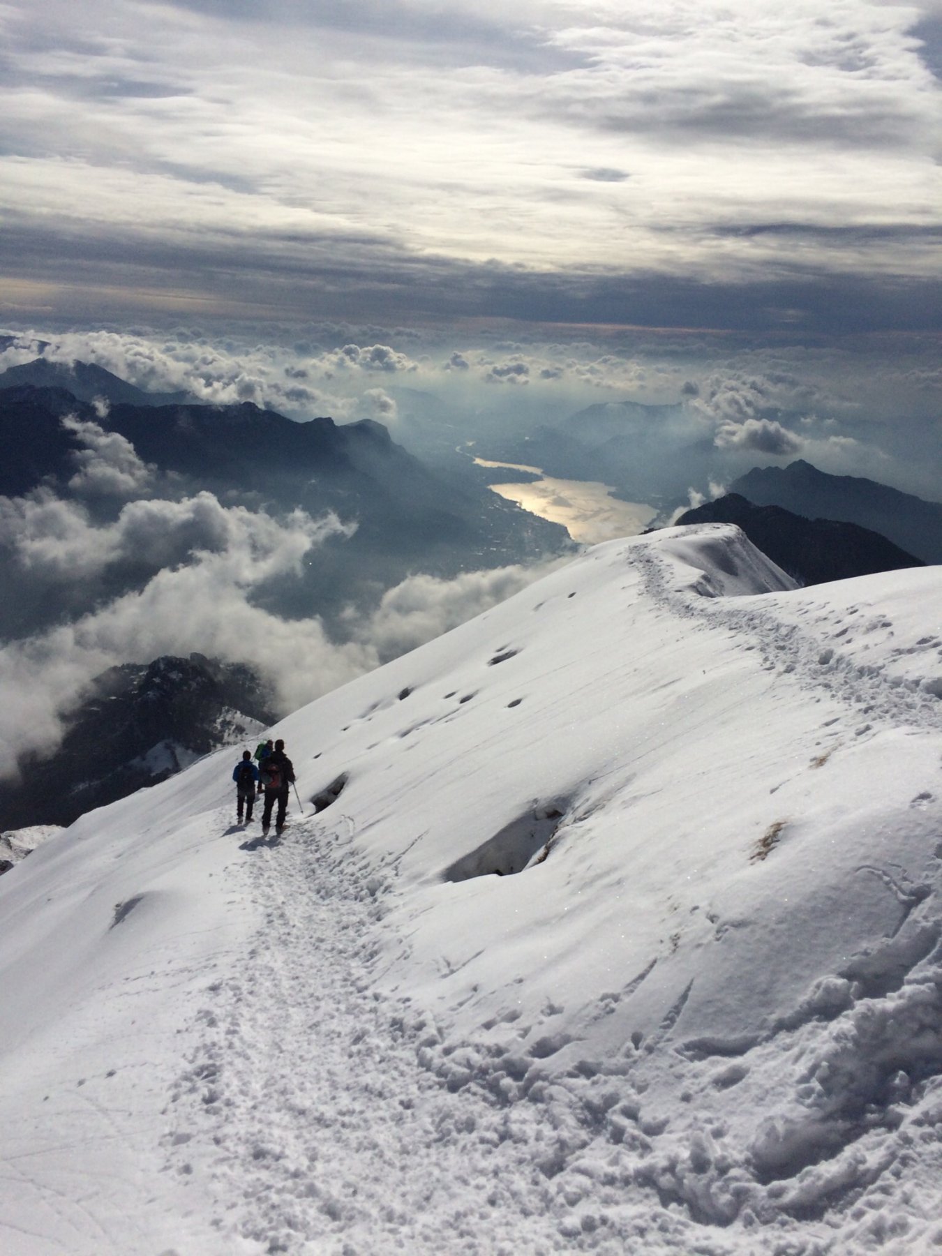 La vetta si raggiunge facilmente lungo la cresta Cermenati (che è la via normale e serve anche per la discesa).
