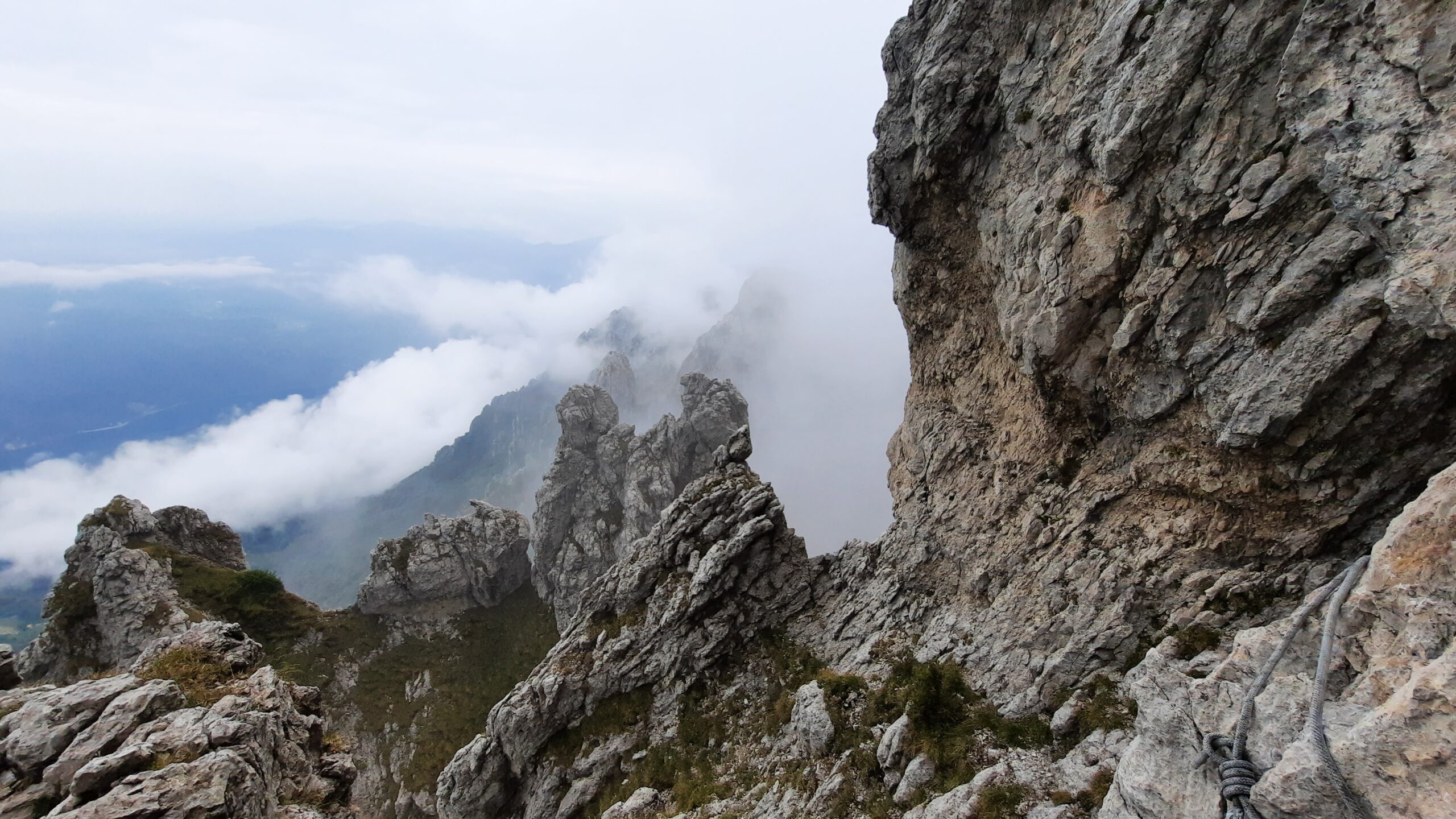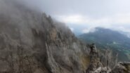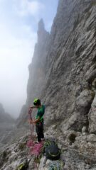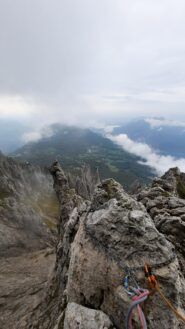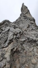 - L3: si continua in verticale nel diedro un pò più tecnico fino a uscire all’intaglio in prossimità dell’anticima (IV – 30 m, sosta su catena)