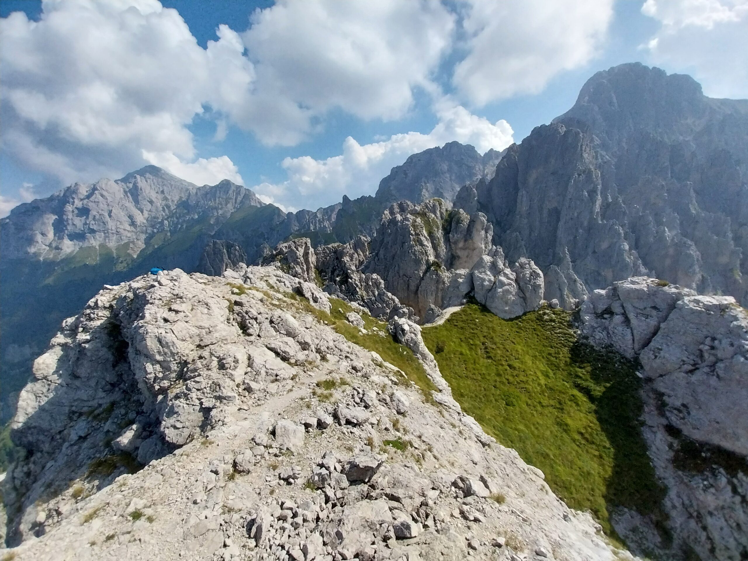 - L2 Salire ancora per placche con qualche saltino meno banale, arrivando comodamente sul pianoro della cima (III – 25m)