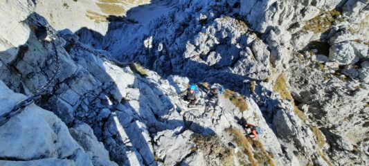 Dai Resinelli si percorre il famoso sentiero della Direttissima (attrezzato a nuovo) fino al colle Valsecchi.