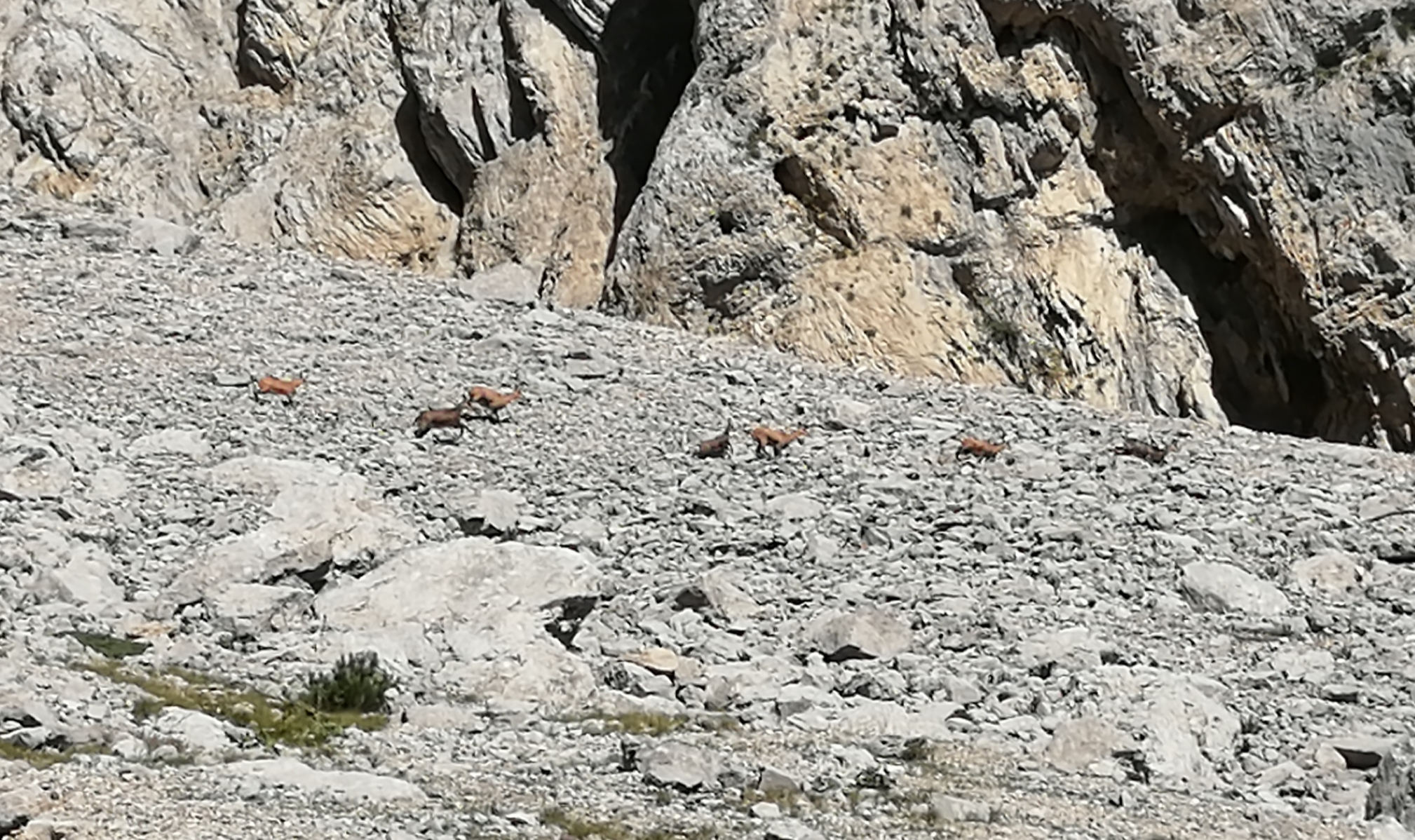 Giornata calda itinerario fresco, partenza dal rifugio Riva, passo della Stanga, val Cugnoletta, passo Zapel, via del nevaio, cresta, rifugio Brioschi, discesa dall’invernale fino ai Comolli poi, poco sotto, tagliato a sinistra per tracce di sentiero fino sotto il Cornel Bus, San Calimero, rifugio Riva. Tutto in solitaria tranne vetta, Comolli e San Calimero. Percorso per amatori e ravanatori nel traverso sotto i Comolli, sconsigliato in caso di pioggia con erba bagnata, anche con quella asciutta si scivola. Avvistato aquile, camosci e marmotta.
