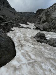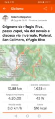Dal rifugio Riva, val Cugnoletta, passo Zapel, via del nevaio, rifugio Brioschi, discesa dalla via invernale, Pialeral, San Calimero, rifugio Riva. Tutto il percorso in solitaria tranne in vetta. Ottimi gnocchetti pizzocherati al Brioschi. Nebbie e nuvole vaganti. Sentieri lavati o con accumuli di detriti dopo i temporali dei giorni scorsi, in ogni caso porre attenzione. Sempre bella e selvaggio l’ambiente di salita.