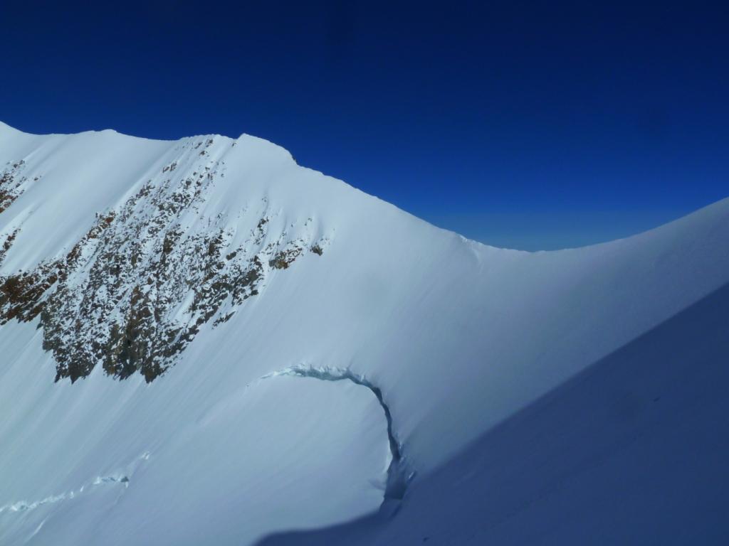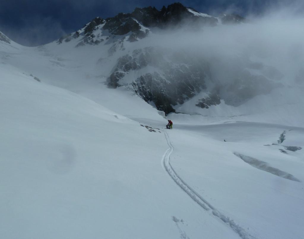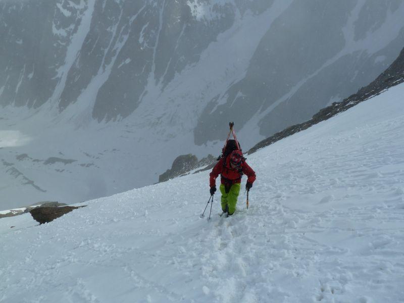 Si raggiunge poi il Col de Bionassay scavalcando la sommità del Piton des Italiens (m 4002) o traversando poco sotto quest’ultima su ripidi pendii nevosi esposti a SO.