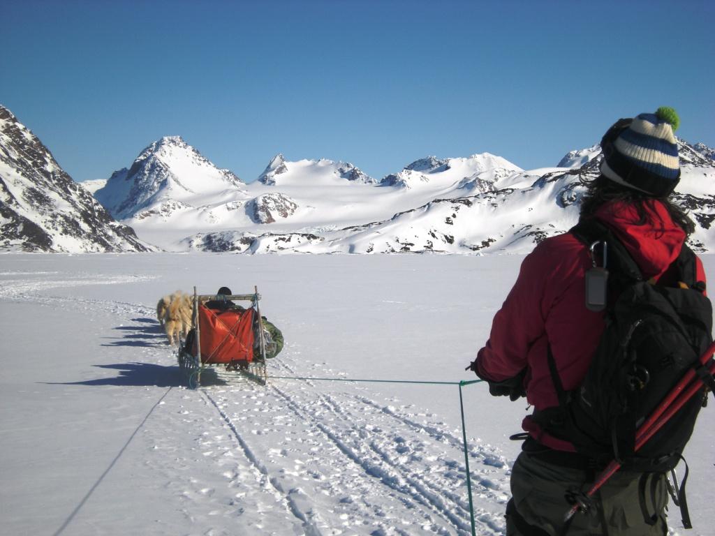 Kulusuk (300 abitanti)è raggiungibile in aereo dall’Islanda, da qui con i cani da slitta ci siamo spostati di circa 15 km all’interno (N-E), sull’isola Apusiajik, dove abbiamo installato un campo base sull’omonimo ghiacciaio, a poca distanza dal mare.