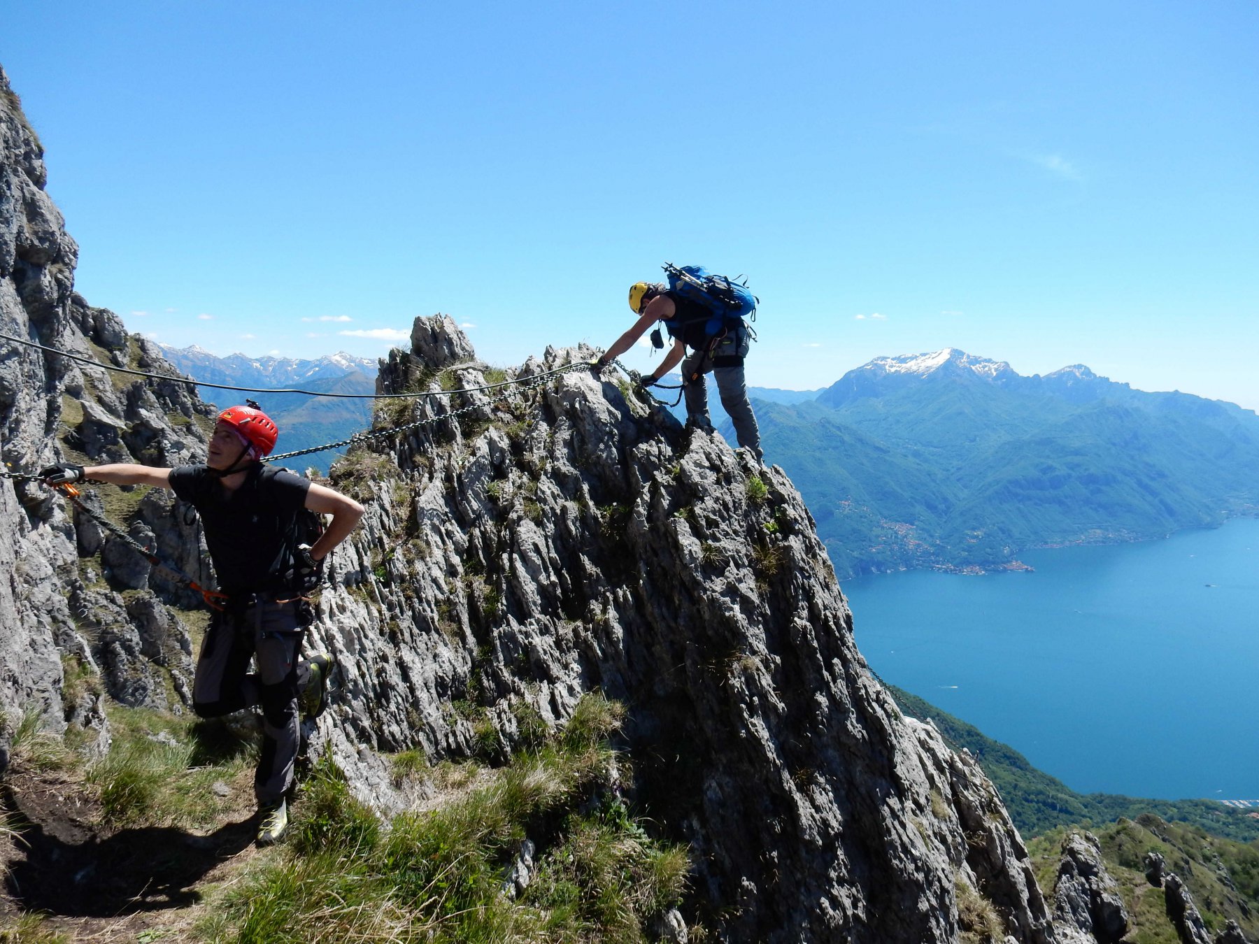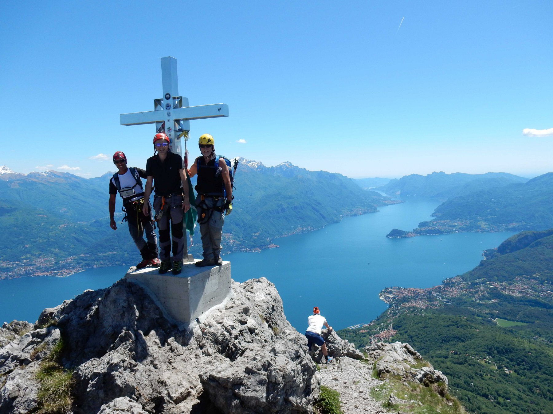 Grande giornata sulla panoramicissima e bella ferrata del M.Grona in compagnia di Clemente e Andrea,per report e foto completo digita(Su e giù …con lo zaino!!! irui70) la seconda volta per me su questa bella ferrata, questa volta però ho azzeccato la giornata perfetta, veramente notevole il panorama sul Lago di Como e le montagne del circondario.Purtroppo come noi l’avevano pensata anche molti altri,affollamento di almeno 40 persone sulla via ferrata.