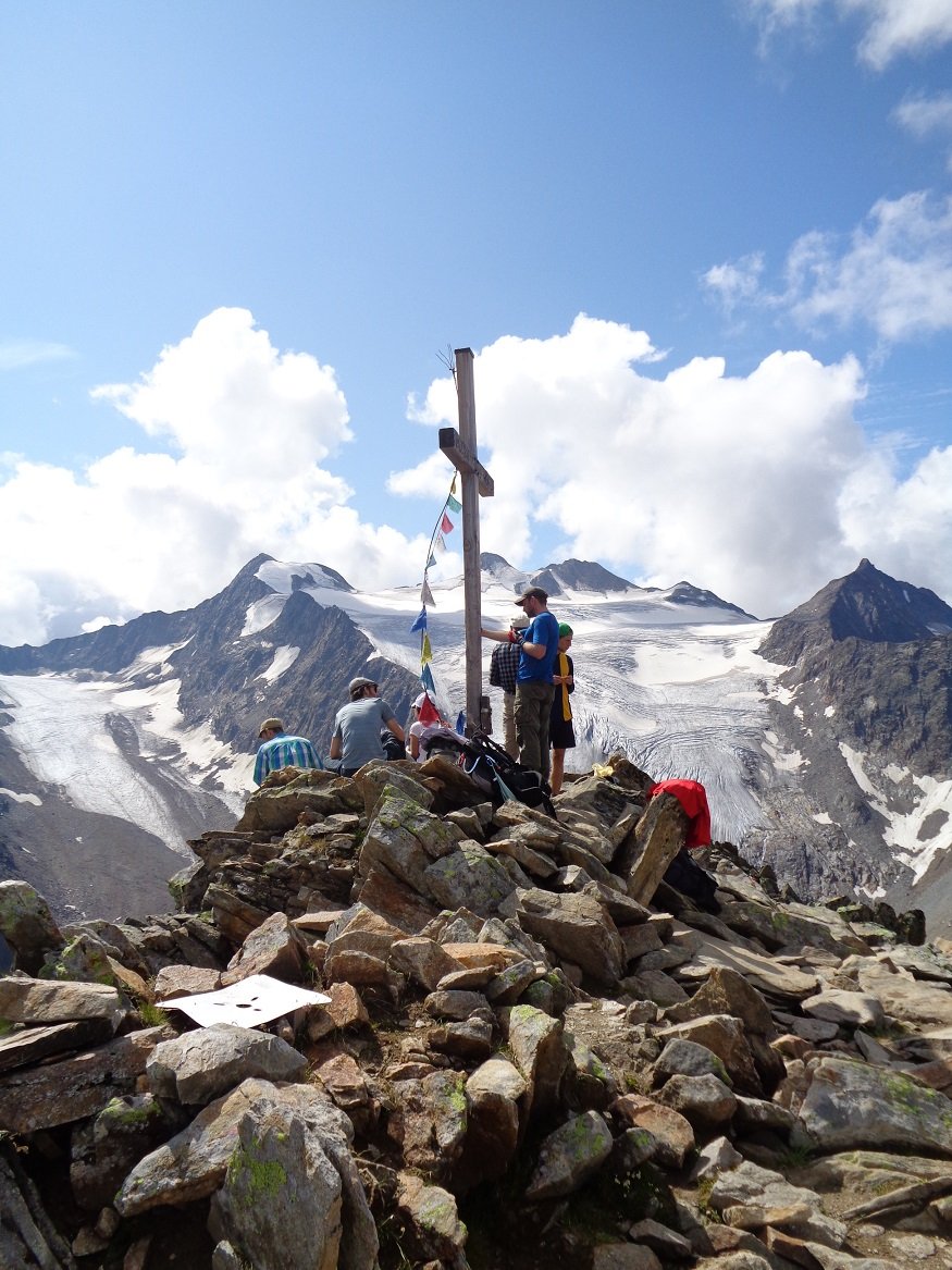 Dalla stazione a monte del primo tronco della funivia Stubaier Gletscher si sale in pochi minuti al Dresdner Hutte da dove inizia il sentiero. Si scende fino a valicare il Fernaubach su una passerella in metallo, oltre la quale si comincia a salire prima dolcemente fino ad arrivare al bivio per il Peiljoch (2450m), oltre il sentiero accentua la sua pendenza fino a 2650 dove entra in una conca di grossi massi per contornarla, da sinistra verso destra (direzione di marcia) puntando ad una forcelletta. Senza raggiungerla, il sentiero, per un breve tratto attrezzato, piega a sinistra e risale qualche metro, doppia una costolatura rocciosa e per grossi blocchi e detriti sale verso la vetta che si raggiunge con un breve tratto su ampia cresta (2902m)