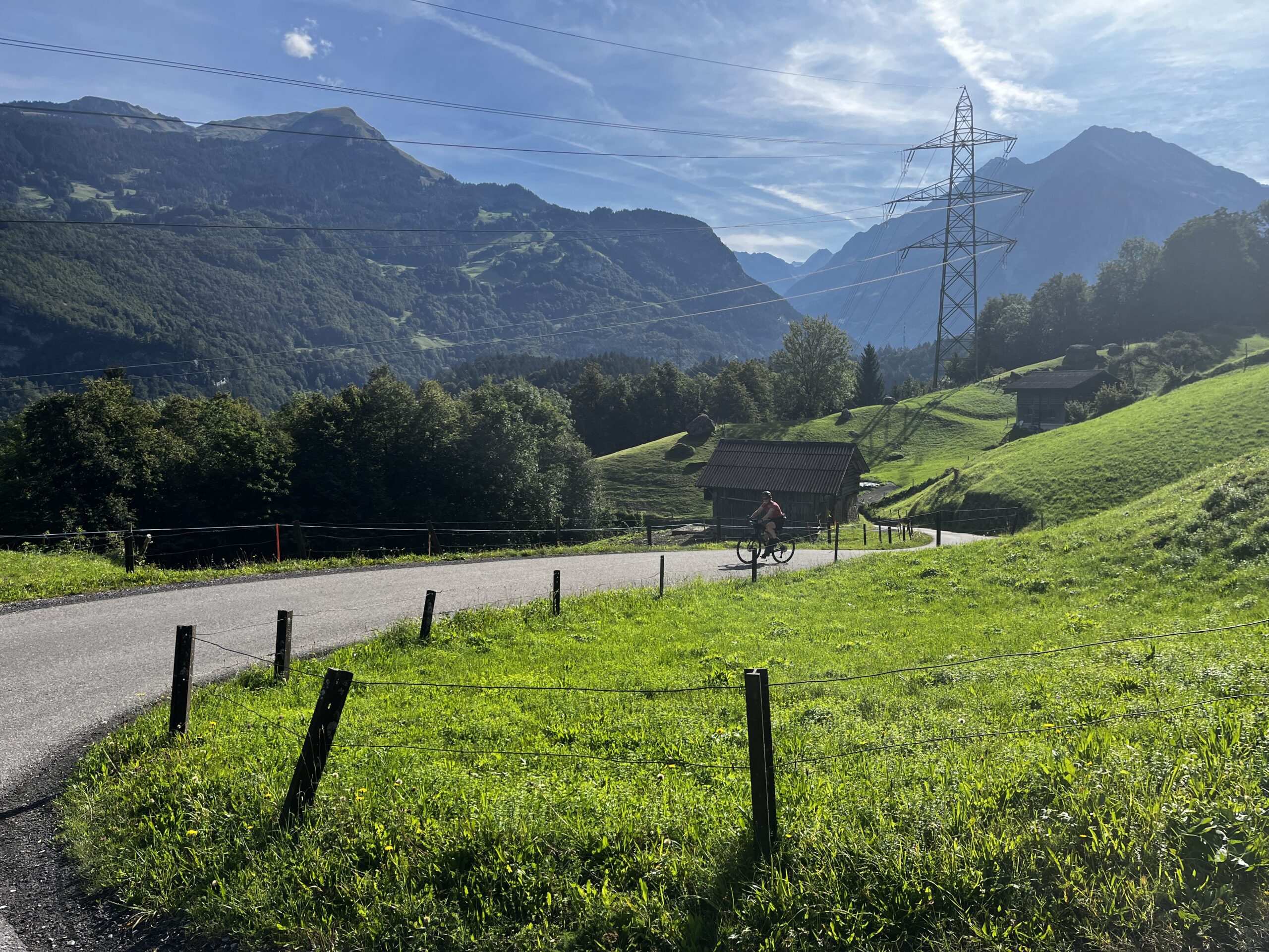 Da qui si scende sulla pianura dove si continua a pedalare in piano tra bellissimi prati e si raggiunge Meiringen.