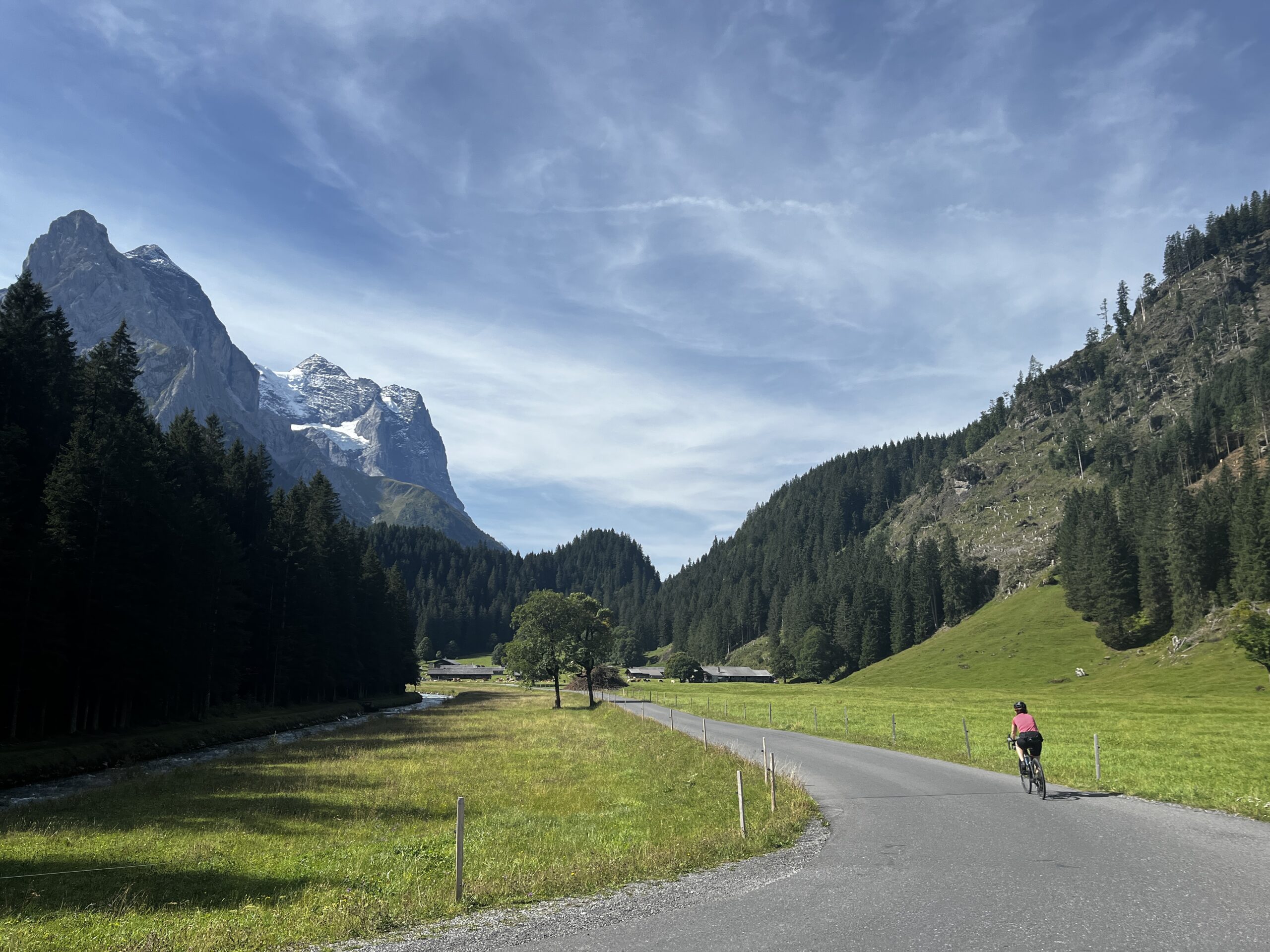 Giro ad anello con gravel bike (possibile anche con bici da strada optando per la strada statale invece di quelle per le bici), che passa per il Grosse Scheidegg con vista spettacolare sull’Oberland, Grindelwald, Interlaken, costeggiando il bellissimo Brienzersee e ritorno su Meiringen. Fare attenzione al passaggio dei bus Postali che nonostante la strada stretta sono i bus di dimensione normali che prendono tutta la carreggiata in larghezza. I bus comunque clacsonano in modo che si sentono gia’ da lontano, quindi ci si puo’ mettere di lato per lasciarli passare.