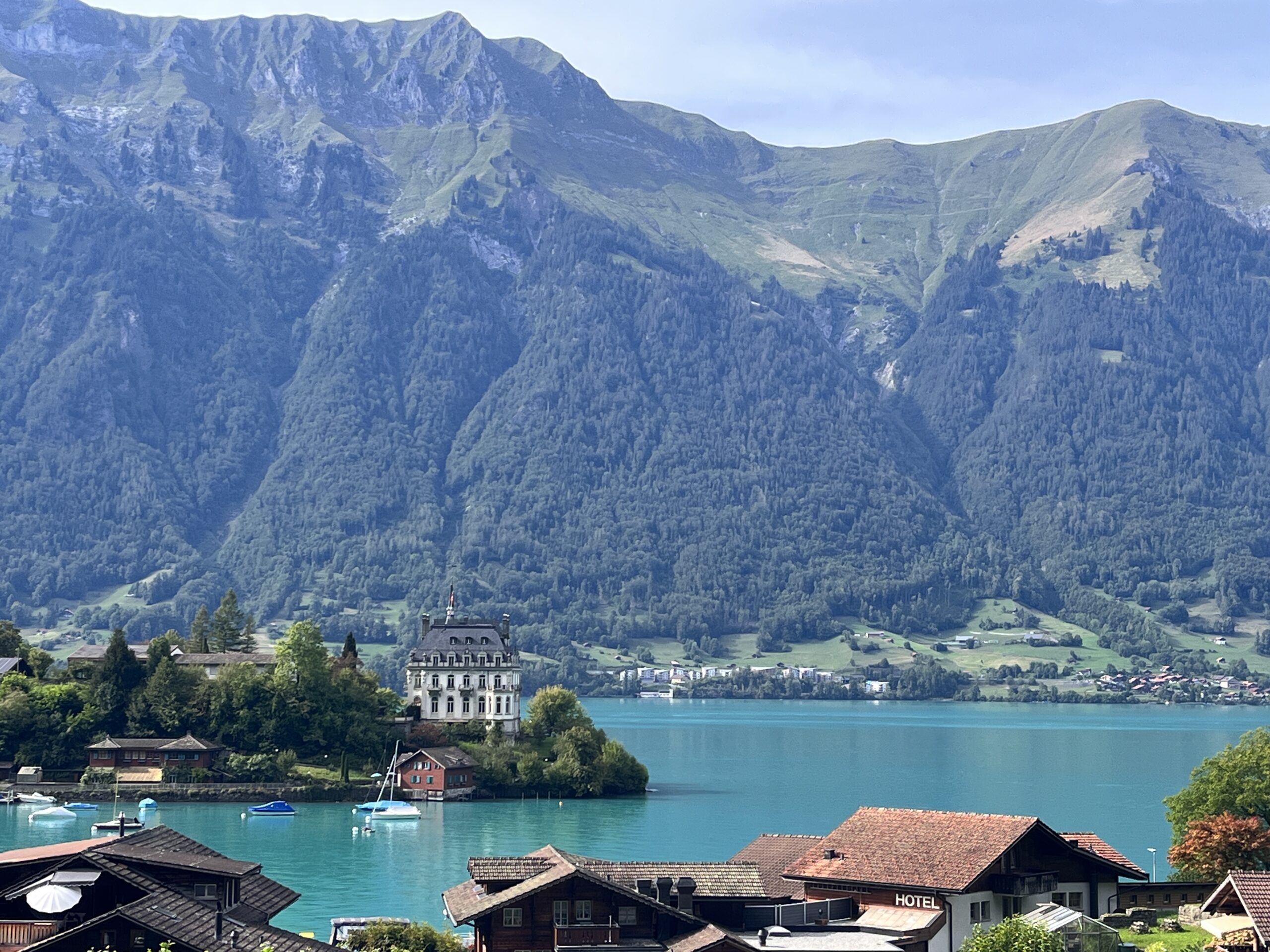 Da qui ci sono ancora due tratti di salita, la prima consente di raggiungere un colle che permette di raggiungere il paese magnifico di Iseltwald (che ha il difetto di essere diventato molto famoso a causa di un film e quindi e’ iperturistico), poi una seconda salita consente di raggiungere le cascate di Giessbach e l’hotel d’epoca con lo stesso nome.