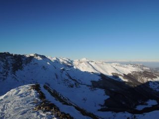 Bel giro consigliabile ma solo se nevica, a sud la neve è pochissima e beton, a nord ovest sono prevalentemente sastrugi e/o ventata insciabile, tutte le cime a Nord o comunque esposte ai venti sono SENZA NEVE in basso e in conche rimane polverosa ma spesso crostosa a tratti. sono necessarie nevicate