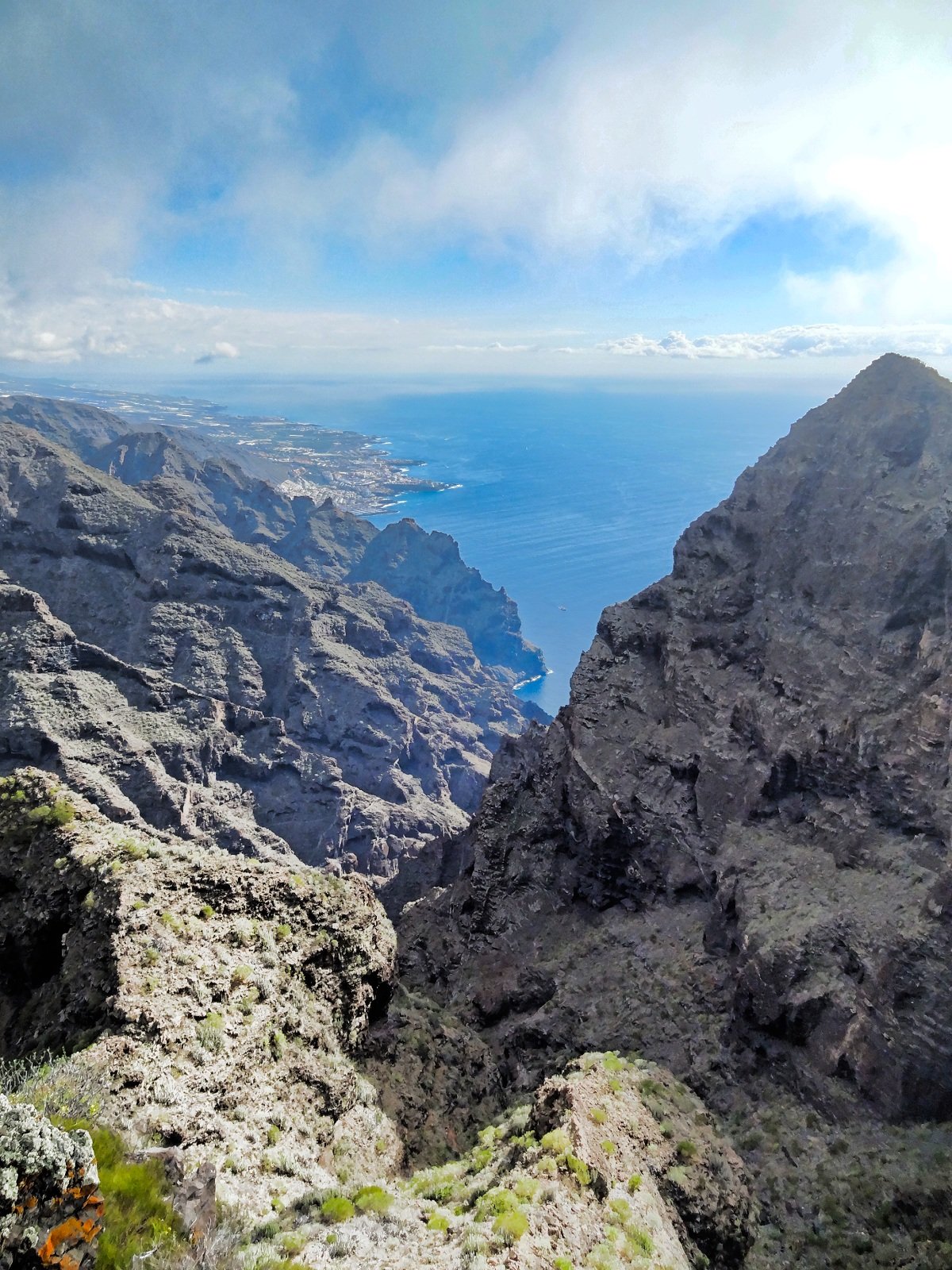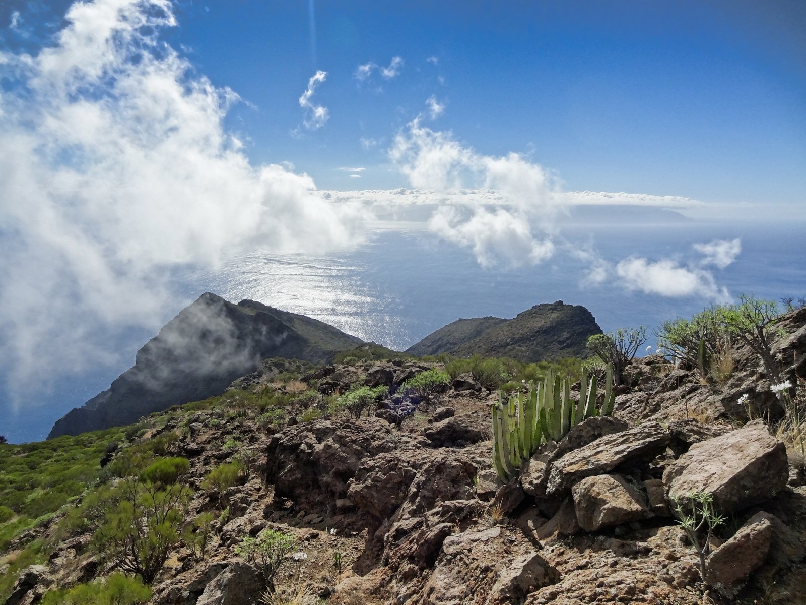 Si raggiunge il punto più alto – Lomo de Tablado 1023m – da cui si ha una splendida vista a 360° fino al Teide. Da qui il sentiero inizia a scendere verso la scogliera. Nonostante l’altitudine non sia elevata, la vista del mare 1 km sotto i piedi fa veramente impressione.