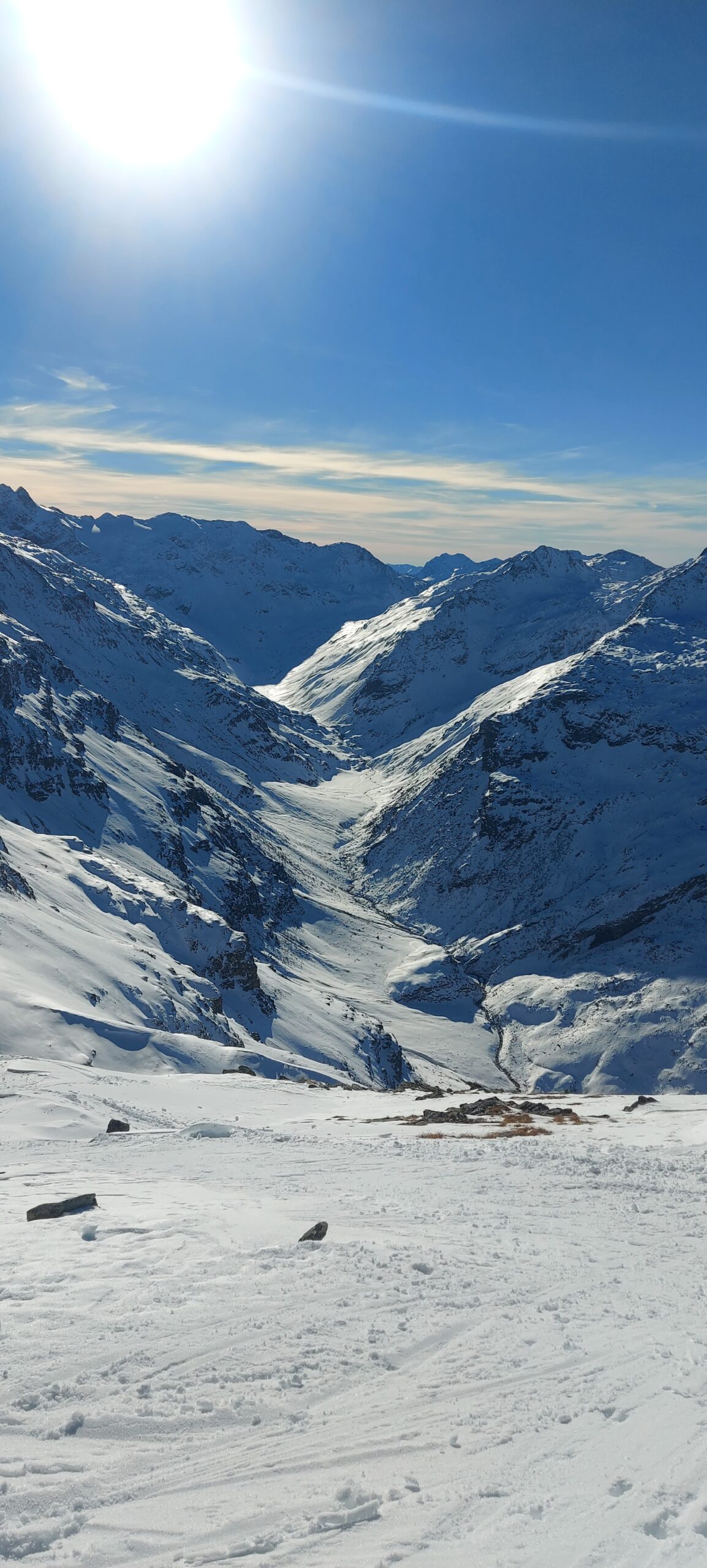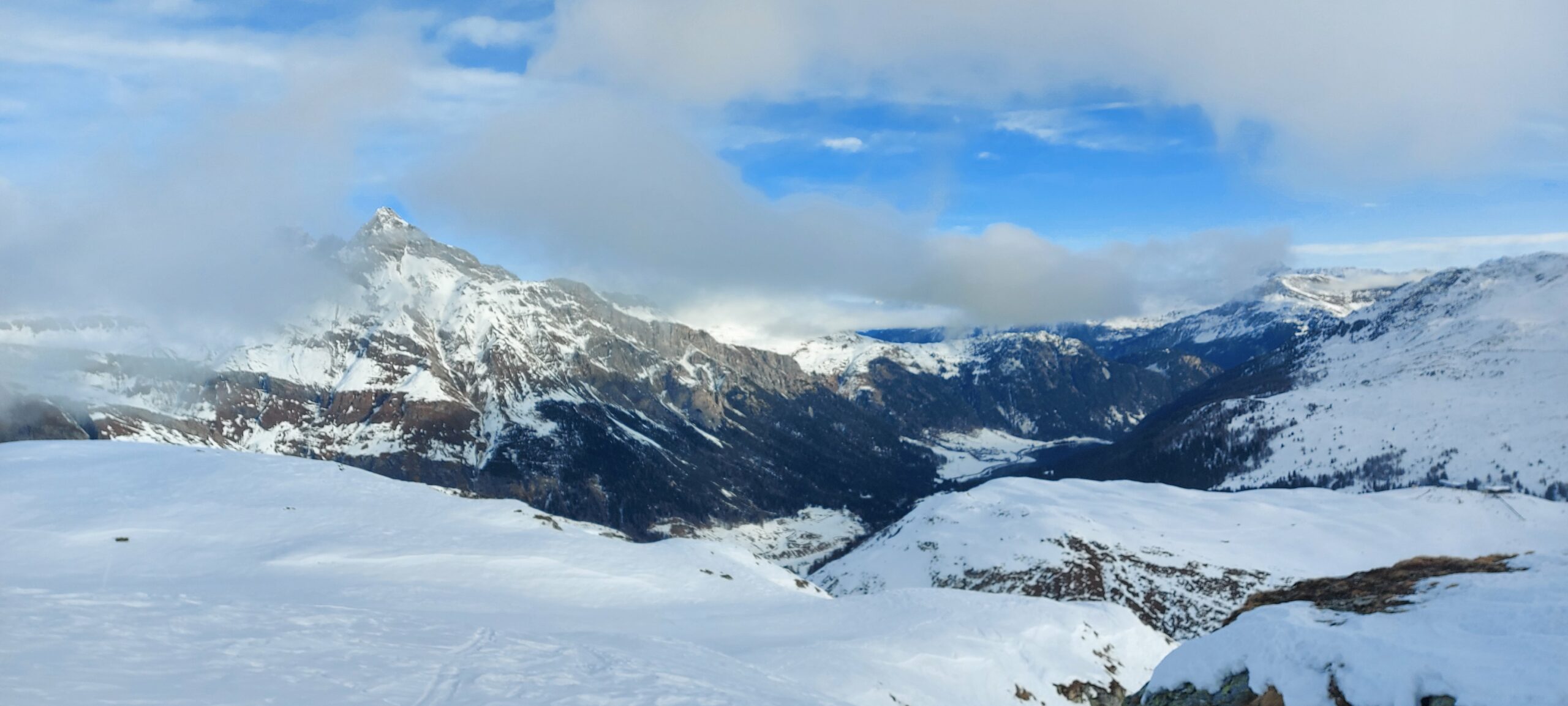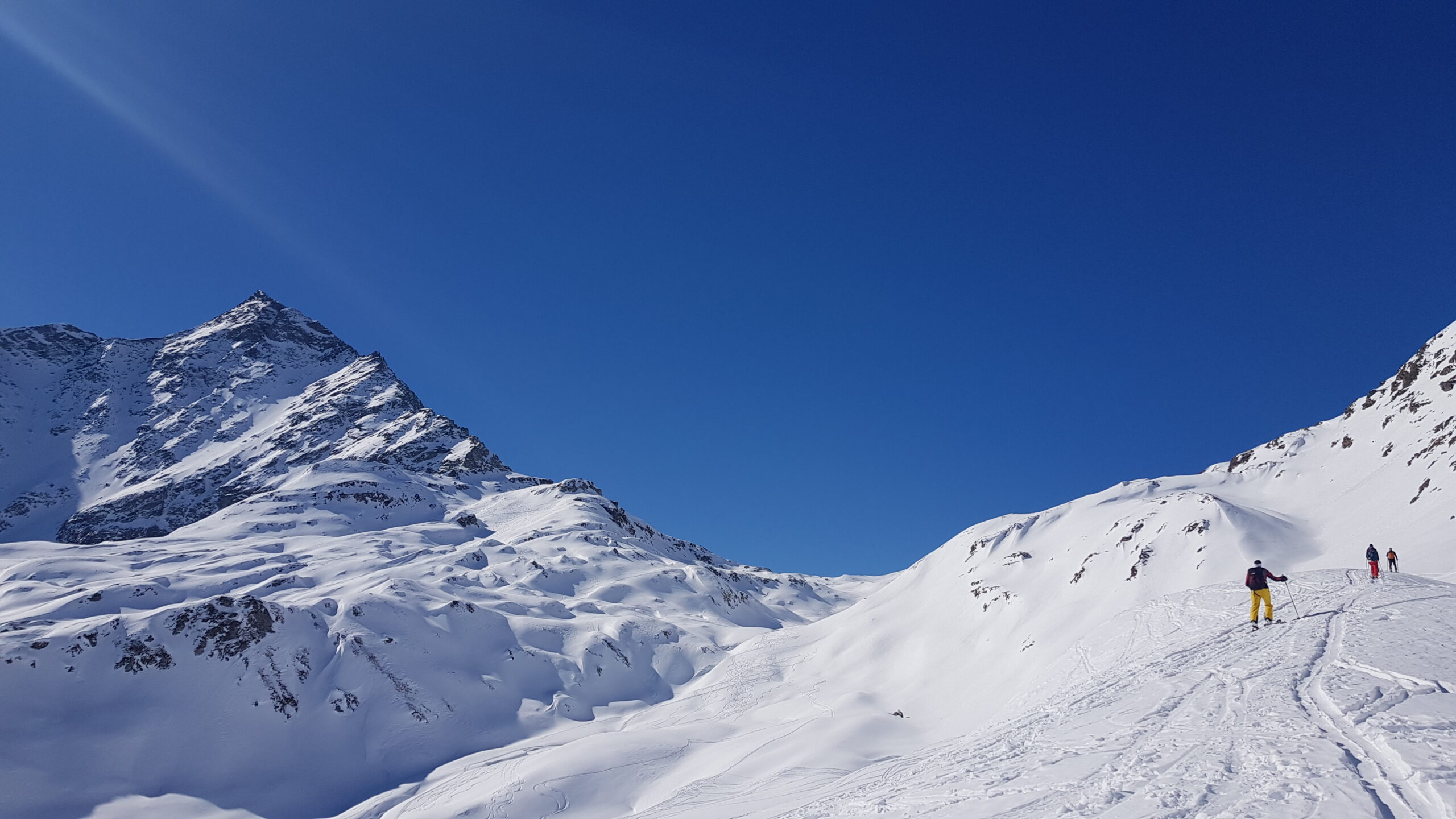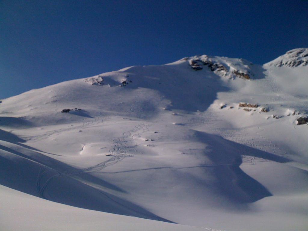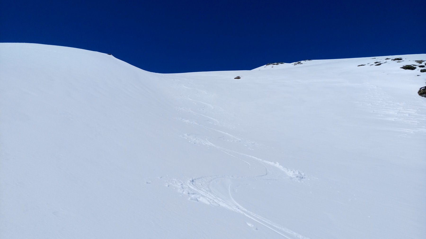 Si abbandona il comprensorio sciistico di Splügen ed attraversato il torrente di fondovalle ci si inoltra nella valle verso SW su terreno scarsamente inclinato in direzione dell’Areupass. Giunti a circa 2300 m di quota si devia verso NW e attraverso una serie di dossi ed avvallamenti si raggiunge un zona pianeggiante a circa 2600 m di quota (in Estate in questa zona sono presenti un paio di laghetti).