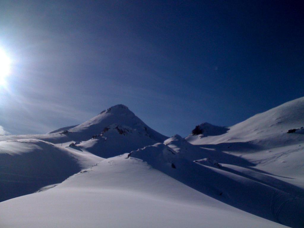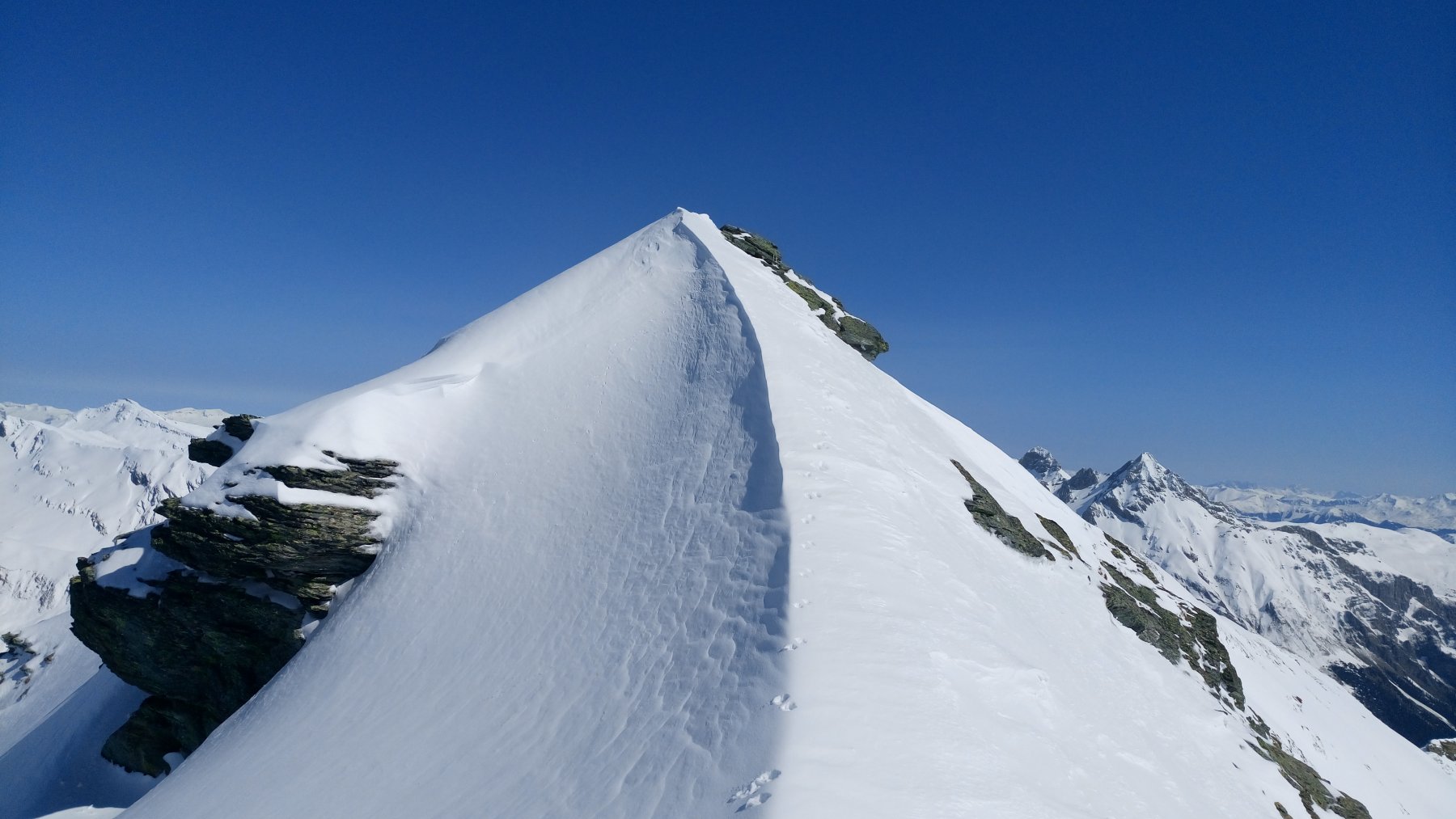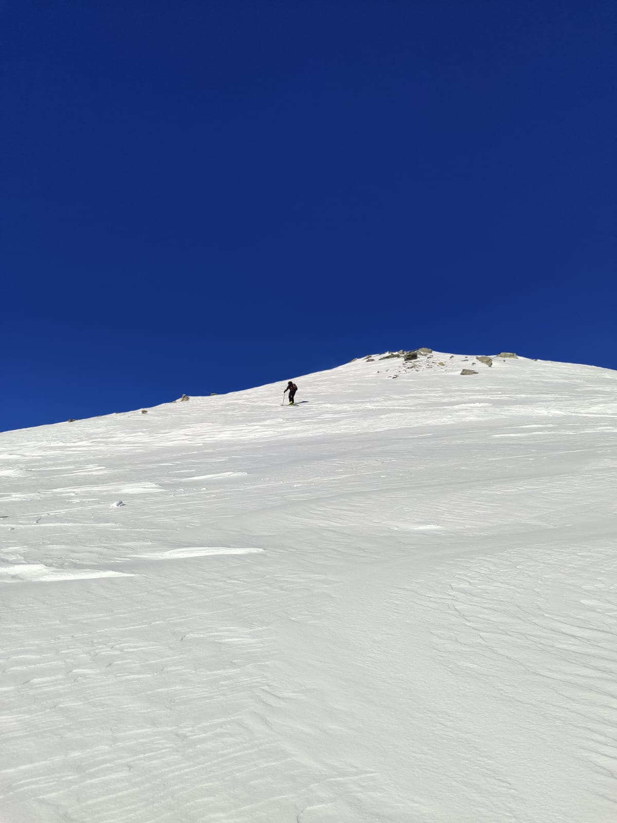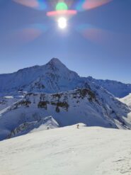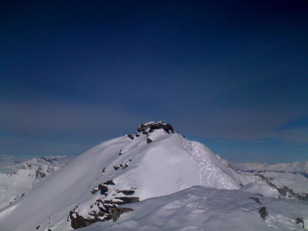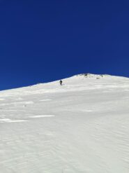 Abbandonati qui gli sci si percorre una breve e facile cresta nevosa ed in un paio di minuti si è sulla sommità principale.
