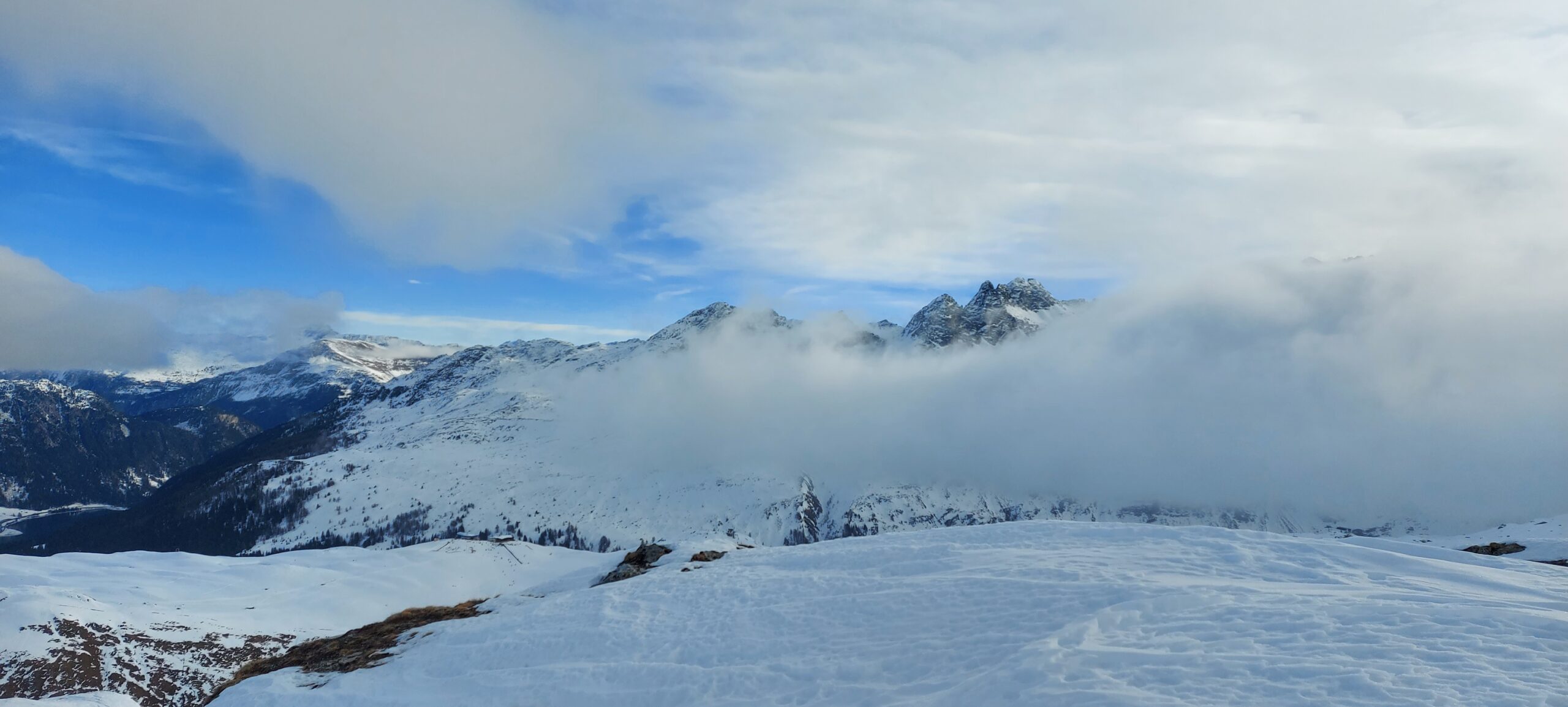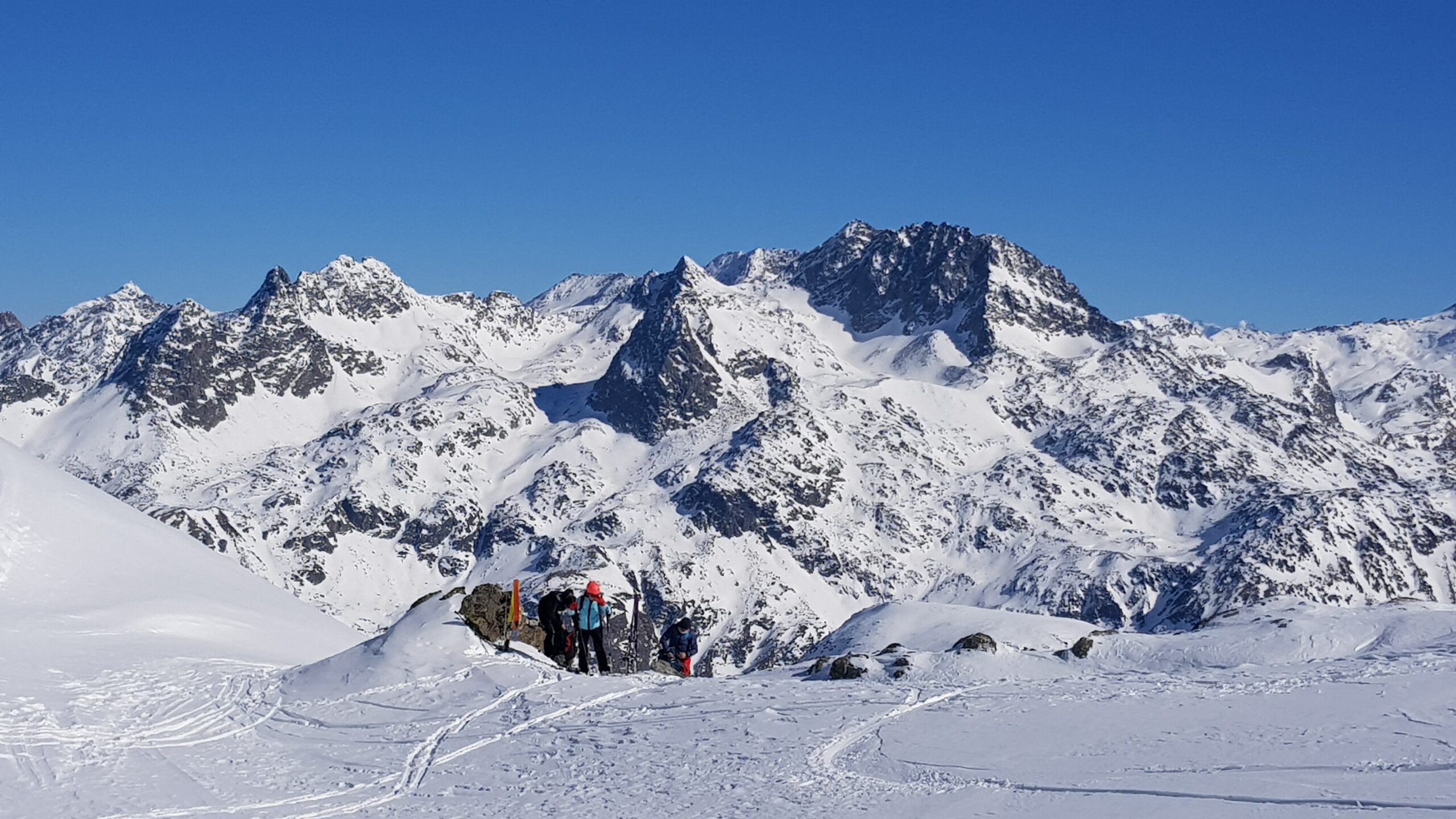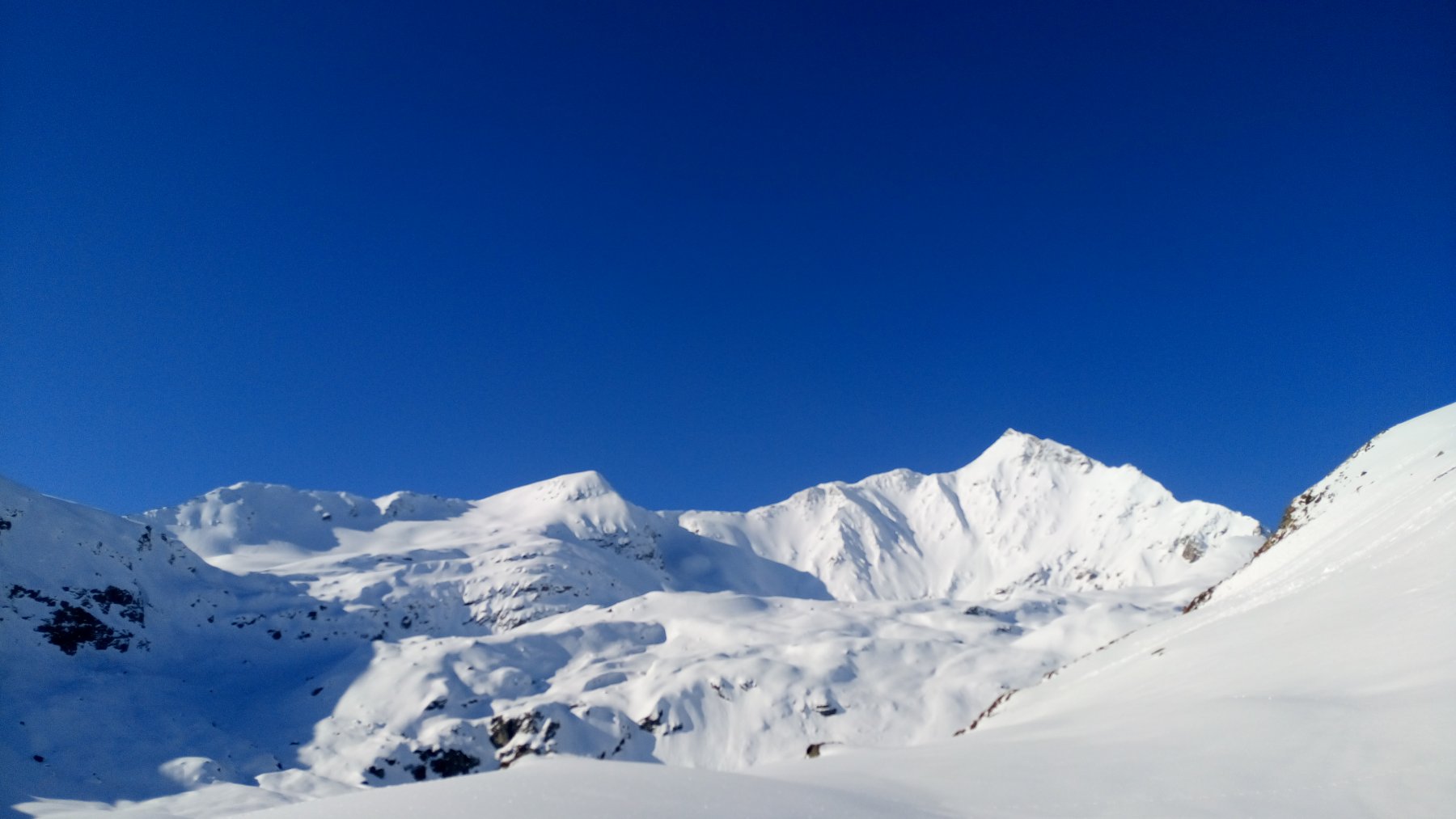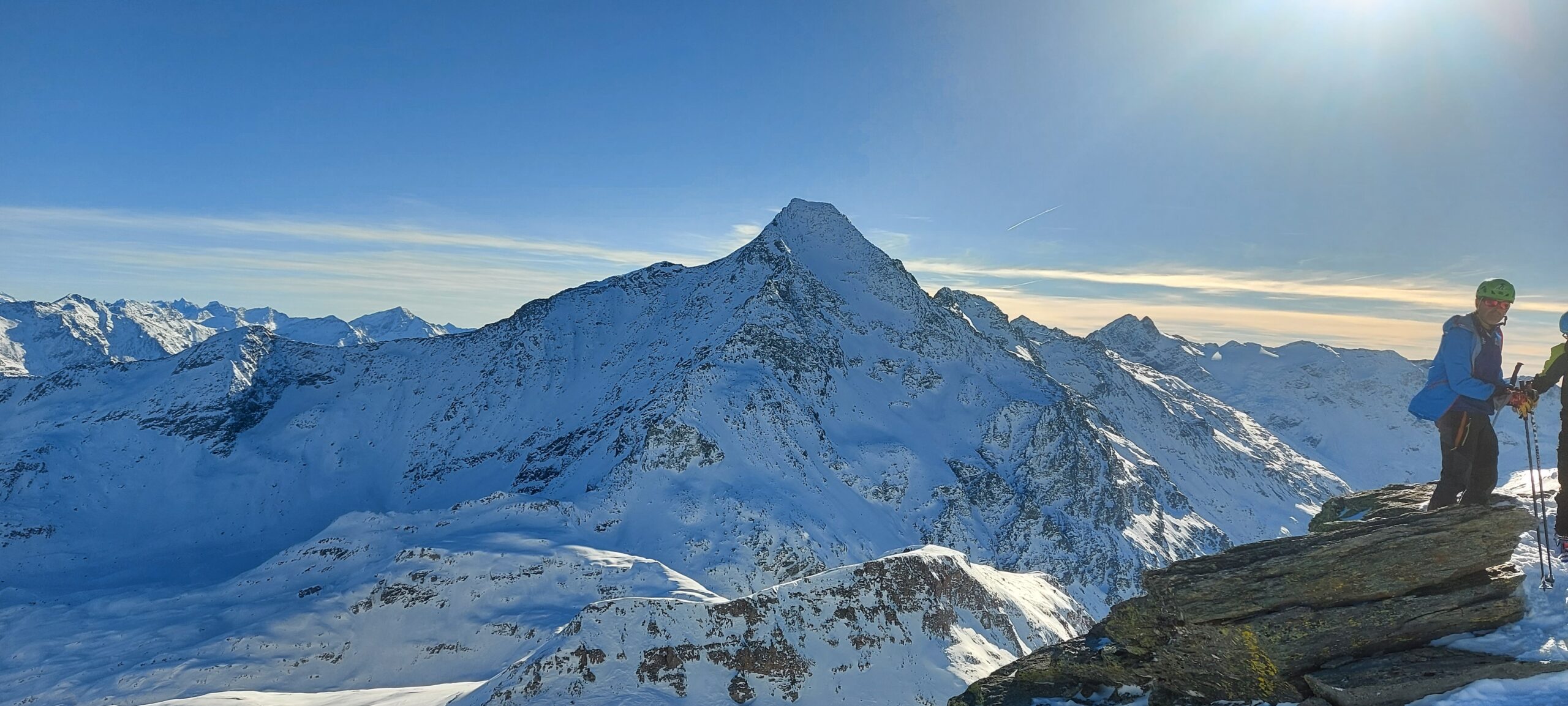 Abbandonati qui gli sci si percorre una breve e facile cresta nevosa ed in un paio di minuti si è sulla sommità principale.