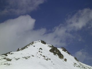 abbiamo lasciato la macchina a quota 1400 m poco oltre foresto poi sci ai piedi lungo la strada fino a pui con tratti senza neve piu’ o meno lunghi.in punta vento forte alzatosi improvviso discesa che tra crosta da vento dura sopra e neve marcia o assente sotto non e’ stata un gran che!situazione in rapido peggioramento visto il caldo