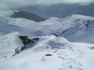 In verità eravamo partiti per pattinare sul lago di Luca,visto che ieri il lago Blu era pattinabile,ma cambia zona cambia tutto,il lago ha una bella coperta di neve,poi se non bastasse ho dimenticati i bastoncini a casa,quindi mi sono arrangiato con due rami di nocciolo,ma finchè la neve era durissima andava bene,poi era come non avere nulla,allora mi sono fermato a solazzarmi al lago mentre i miei amici sono andati in cima. Comunque e un’ottima sciata anche se c’è da portare parecchio gli sci. Si arriva in auto fino alla borgata Colletto poi c’è un pezzo di strada impraticabile.