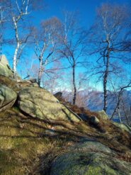 Fuori dal 4 tiro andare alla betulla sopra a quella di sosta e prendere una buona traccia orizzontale verso dx, un po expo fino alla sosta successiva.
