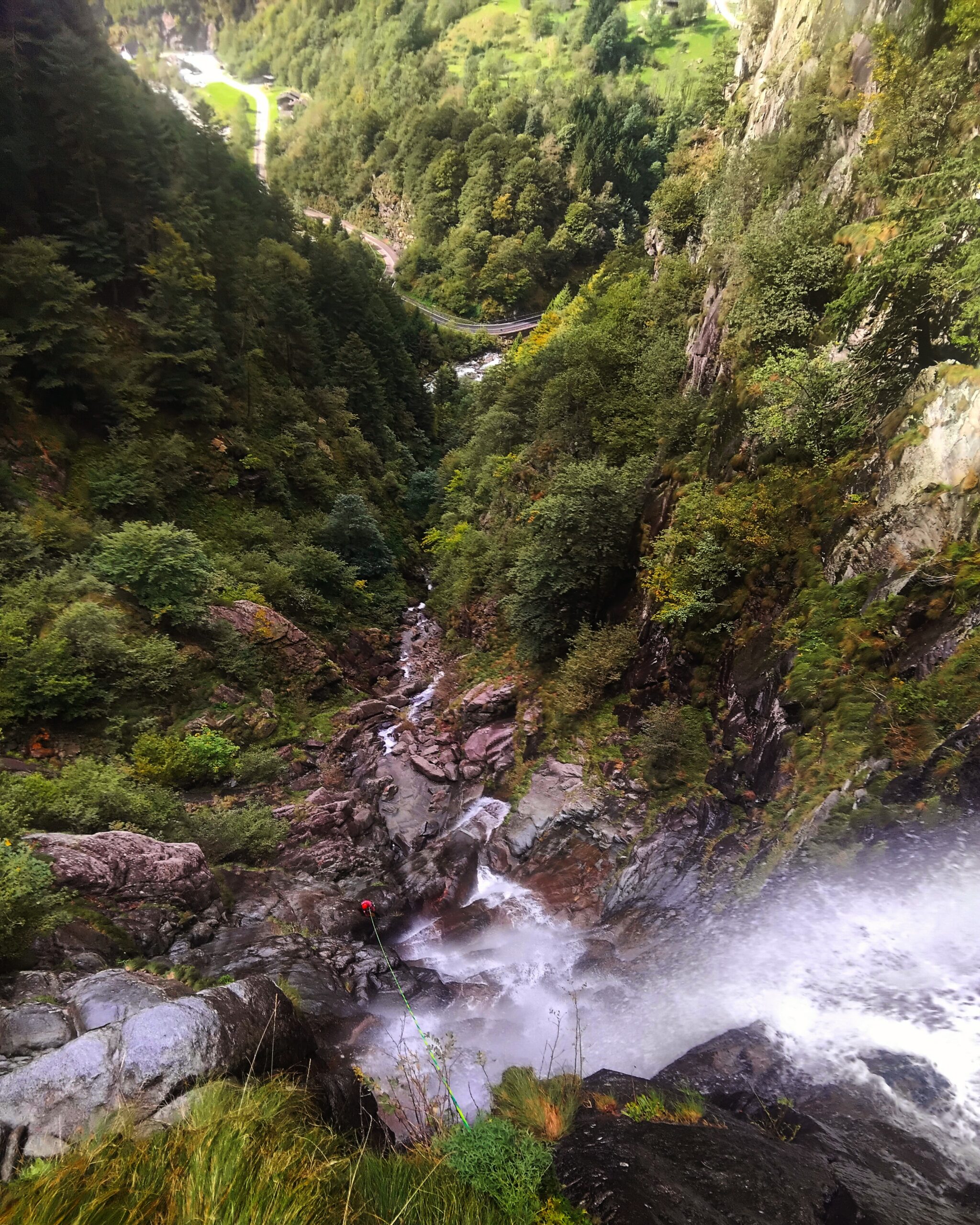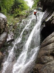 Si comincia scendendo nel letto del torrente tra massi, con qualche disarrampicata,