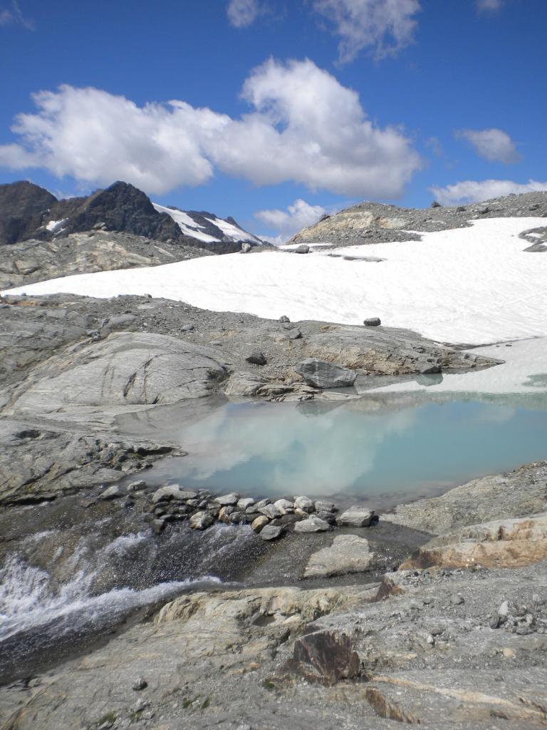 Da l’Ecot per il Refuge des Evettes in 1h e 30, proseguire dritto su ottimo sentiero fino al ponticello. Seguire per qualche metro il traccione verso l’Albaron ed abbandonarlo svoltando a sinistra in corrispondenza di un grosso ometto. La traccia che porta in un’ora abbondante verso lo splendido laghetto glaciale è ottima ed evidente.
