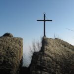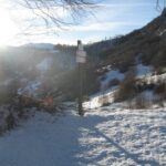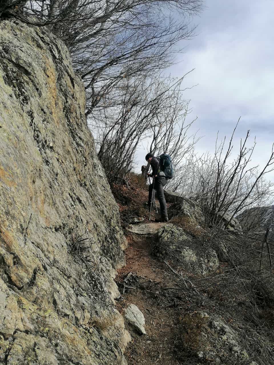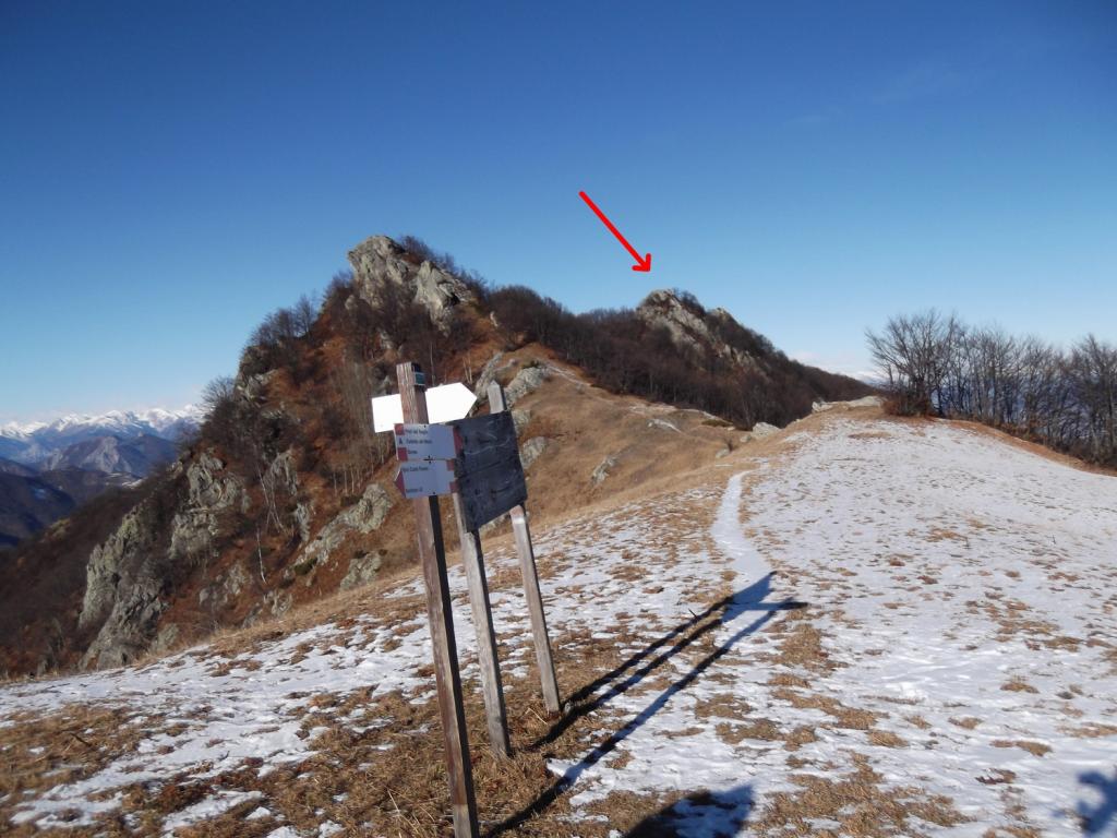 Tra due case si prende il sentiero che sale fino ad un costone dove si trova una freccia indicativa gialla.