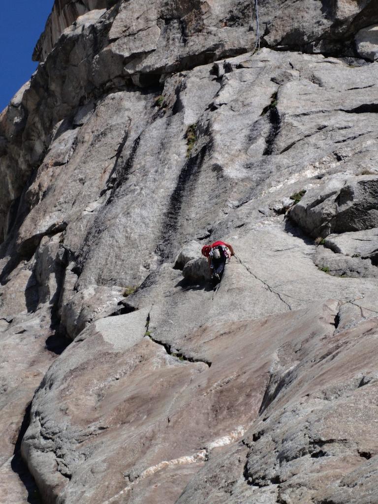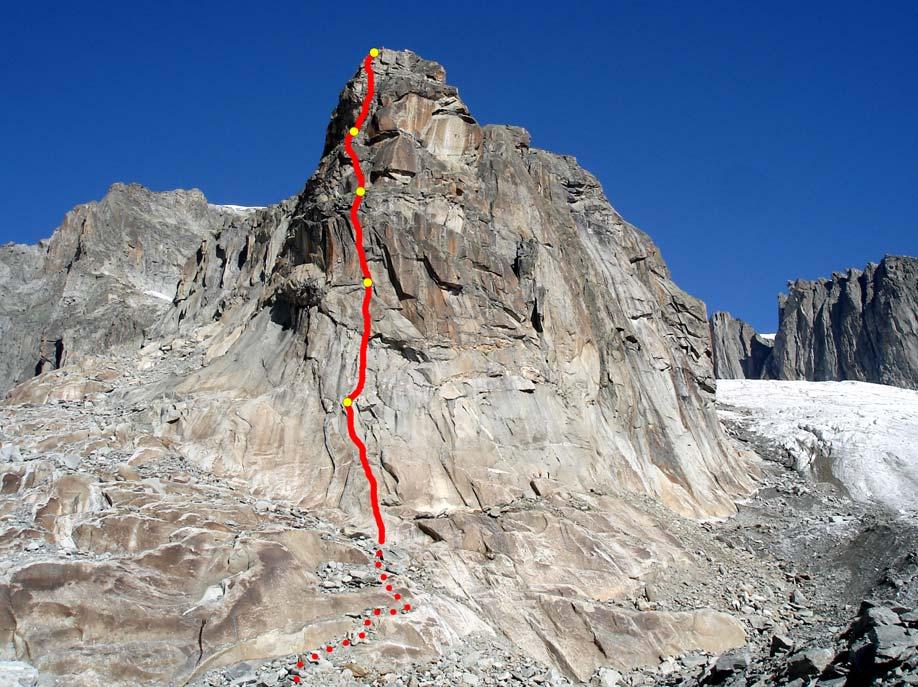 Bella via plaisir, completamente spittata, che si sviluppa sulla parte sinistra delle torre. Granito super. Consigliabile abbinarla all'altra eccezionale via Conquest of Paradise