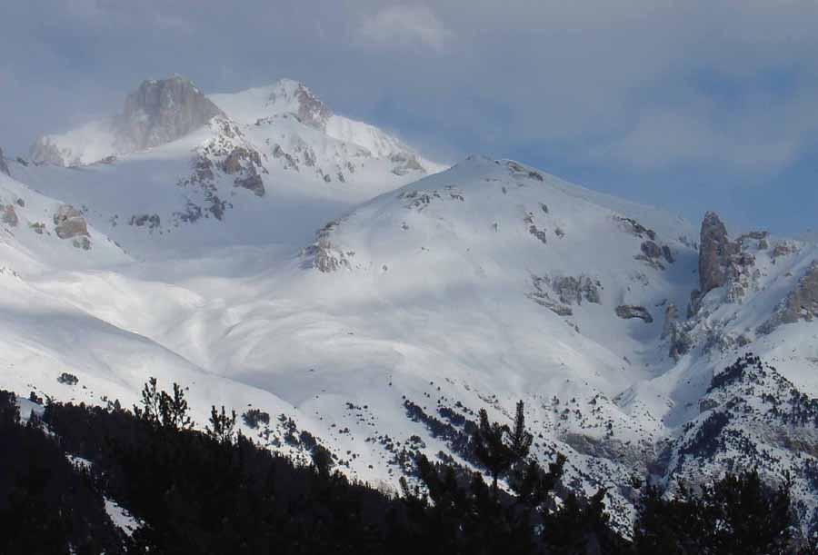 Variante di discesa in traversata: seguire brevemente il filo della crestina secondaria est alquanto aerea (meglio senza sci) fino a giungere in vista di uno speroncino proveniente da sinistra; scendere con precauzione a sinistra i primi metri del pendio che precede lo speroncino (eventuale cornice – valutare eventuale accumulo) passare alla base dello speroncino deviando a destra e giungendo su un piccolo ripiano per poi scendere su belle dorsali (valutare bene la più sicura) fino a raggiungere il fondo del vallone di Bonne Nuit; proseguire per questo (alcuni punti un po’ impegnativi nella strettoia) fino ai prati sopra l’Adroit di Sollières.