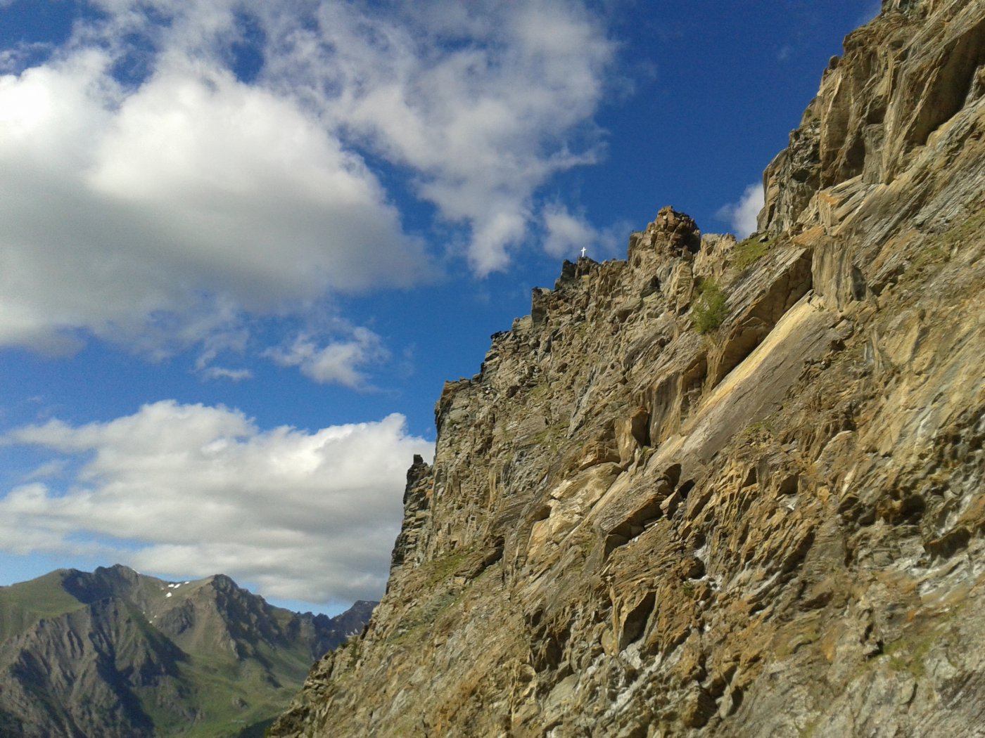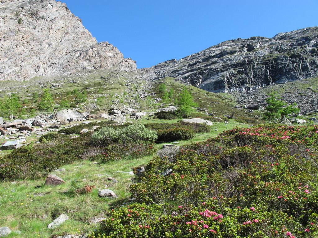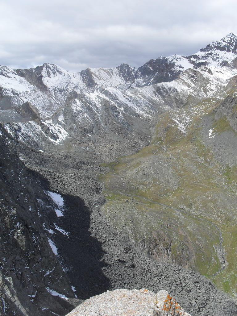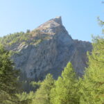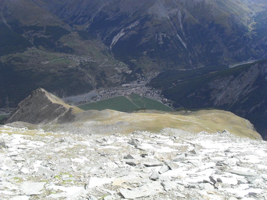 si volge quindi a sx, attraversando il vallone, e con leggera ascesa ci si porta sul ripido pendio a dx del dirupato versante nord dell’ouillè. con ottimo sentiero e numerose svolte si raggiunge un panoramico colletto a quota 2480 m. volgendo a sx, per tracce di sentiero, si sale alla vetta dell’ouille 2521 m (cautela, tratti esposti).