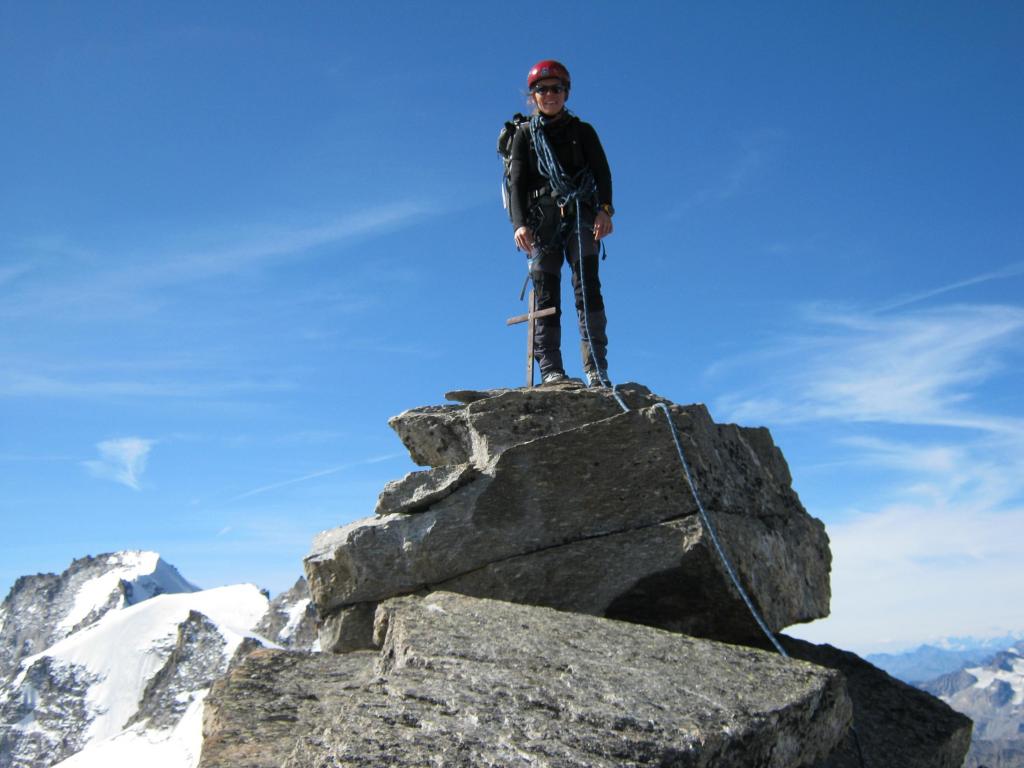 Salita caratterizzata da un notevole sviluppo immersi in un ambiente solitario ma di grande soddisfazione. Unico neo le troppo mutate (in peggio) condizioni della montagna dalla mia prima salita di parecchi anni fa. Primo giorno salita e pernottamento all’ottimo bivacco Leonessa passando per i casolari dell’Herbetet. Secondo giorno sveglia all’alba, veloce colazione e avvicinamento verso il colle sud. Alla base del pendio di sfasciumi che porta al colle una prima e infida placca di roccia costringe ad una arrampicata piuttosto delicata. Appena sopra sulla destra c’è un punto di ancoraggio. Alla base residui di ghiacciaio con grossi buchi formatisi per il ritiro del ghiaccio. Passata la placca fino al colle la salita è più facile ma sempre su sfasciumi che aspettano solo di essere sfiorati per venir giù. Dal colle la cresta alterna sfasciumi a parti di arrampicata su placca e qualche passo su buona roccia a patto di rimanere più possibile sul filo, mai particolarmente difficile ma richiede attenzione. Nell’ultima parte la pendenza si fa più sostenuta e il diedro in traverso sotto la vetta ci costringe a proteggere decisamente vista la presenza di ghiaccio. Ultimi passaggi di facile arrampicata e siamo in cima. La giornata limpida ci fa apprezzare un panorama strepitoso a 360 gradi. Discesa per la via di salita, alcuni passi delicati con tanta attenzione al canalino sotto il colle. Usato l’ancoraggio per scendere in doppia fino alla base, circa una ventina di metri. Meritato ristoro al bivacco e rientro infinito fino al parcheggio di Valnontey.