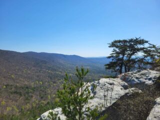 Si passa infine accanto al Cheaha Wilderness Dedication Marker (una targa di bronzo posta su una roccia) e si giunge al punto piu’ alto dell’itinerario, Hernandez Peak. Qui il panorama e’ limitato e la cima e’ molto tondeggiante, rendendo difficile identificare il punto culminante. Una lunga discesa porta a fianco al Pinhoti Commemorative Boulder e infine ci si ricongiunge al sentiero dell’andata. Con una breve svolta a sinistra si ritorna al parcheggio, completando cosi’ un vasto anello.
