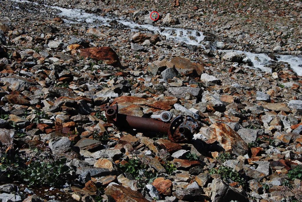 Dal rifugio Elisabetta ho preferito fiancheggiare il torrente, ignorando il sentiero per le Pyramides Calcaires, fino a trovare i resti del motore dove sapevo esserci il punto di attraversamento: stavolta questo non è stato un problema.