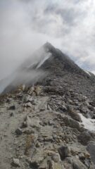 Cresta pulita, piccola lingua di ghiaccio residua poco sotto alla cima, che si può aggirare salendo a destra.