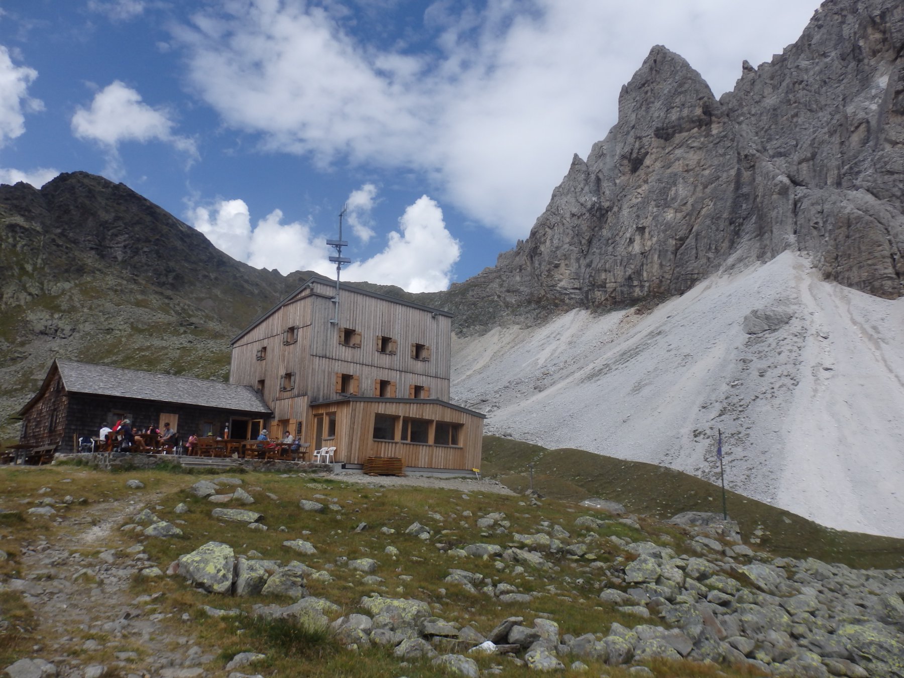 In discesa si torna alla forcella e si cala per il ripido versante poi prativo al rifugio Starkenburger. Dal rifugio si percorre il panoramico sentiero che conduce nuovamente al Sennjoch e poi alla stazione a monte della funivia