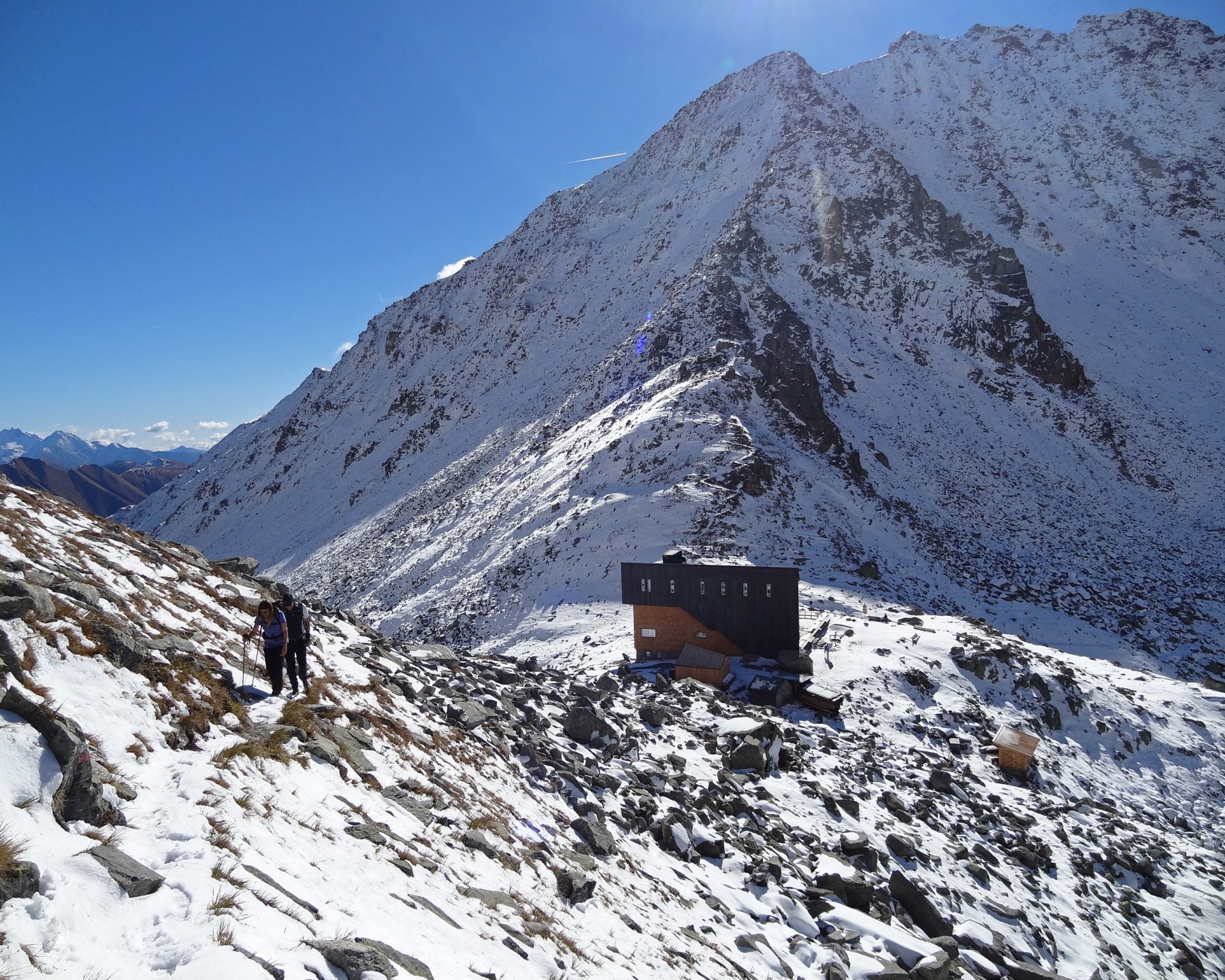 Si passa sulla diga e si segue sempre verso ovest il sentiero n.26, che percorre una valletta erbosa e poi rocciosa portando al rifugio Edelrauthütte-Ponte di Ghiaccio 2545m (1.30/2 ore).