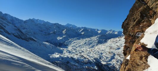 Le condizioni fino al passo Sempione sono desolanti, poca neve e cime spelacchiate dal vento….ma appena si scende cambia tutto….Rothwald sembra un’altra mondo…è vero la Neve non è tanta,ma di qualità…