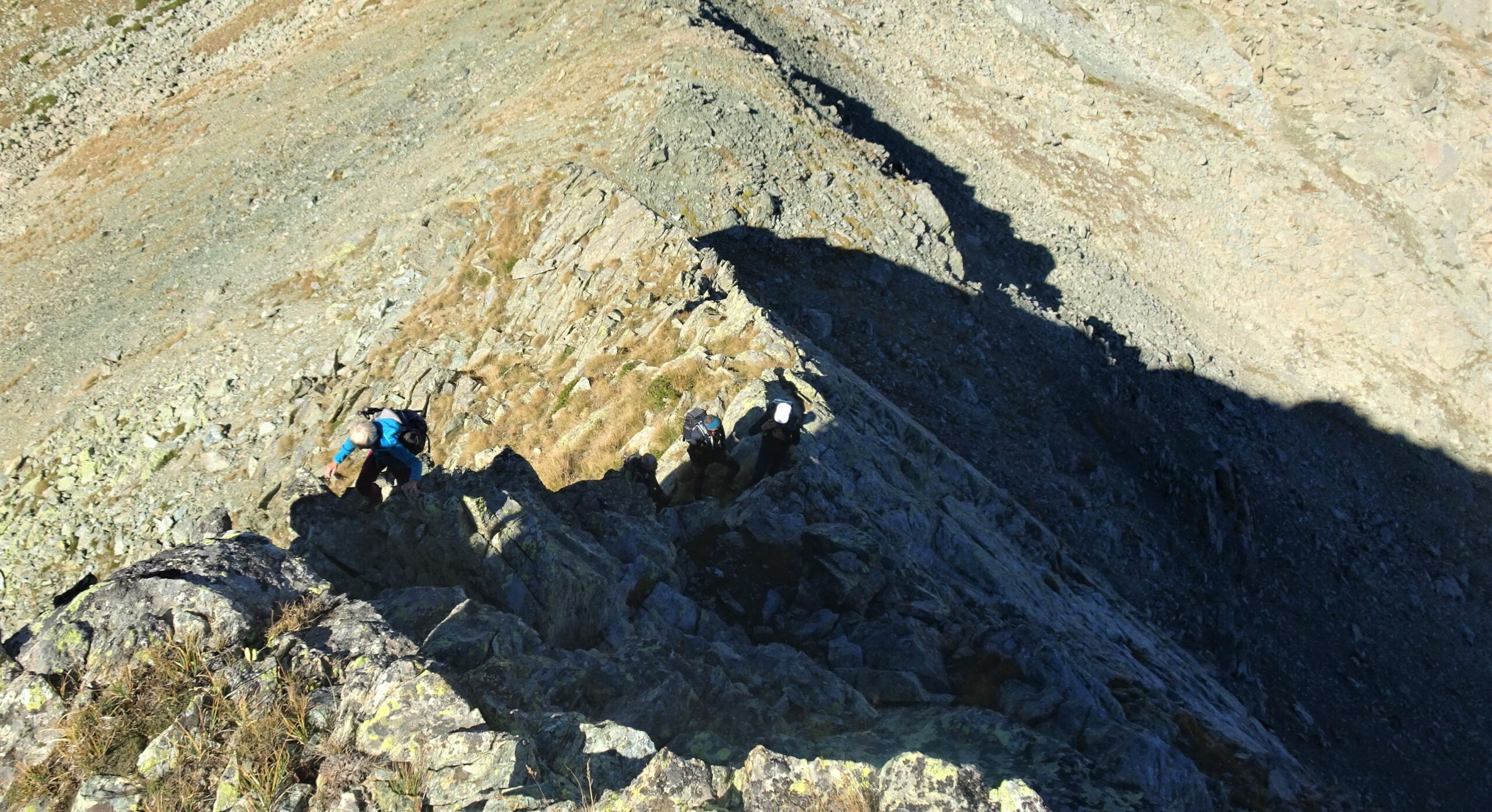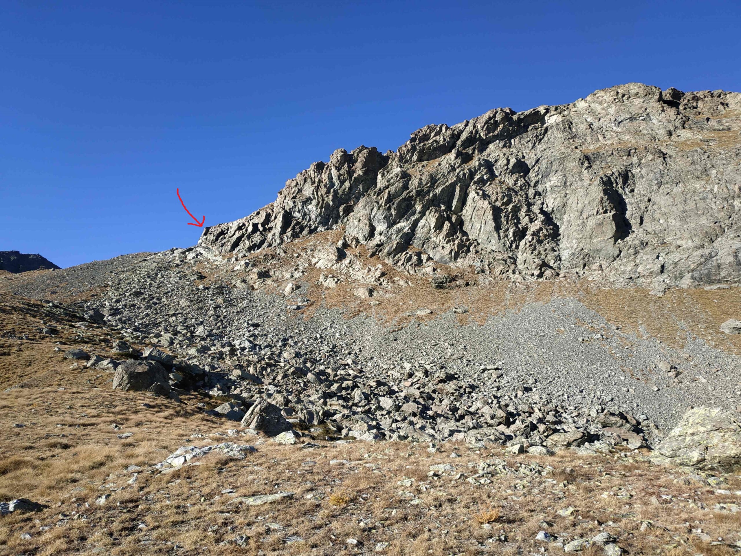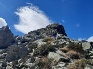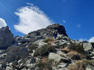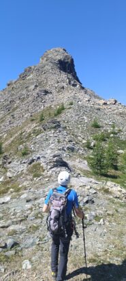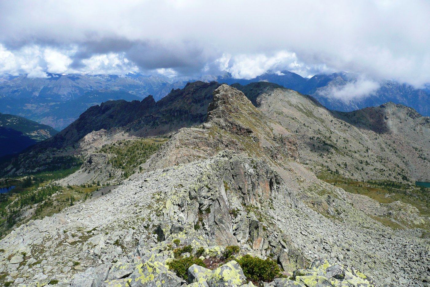 Dalla cima (2539 m) ritornare sui propri passi per 3-4 metri, poi scendere per roccette ed erba il pendio sud e spostarsi progressivamente verso Ovest puntando verso le Tete des Hommes, arrivati al colletto salire il facile dosso di blocchi rocciosi e la successiva cresta fino alla 2a cima, di qui si scende la cresta Ovest che è facile da percorrere quasi interamente, ad eccezione di un passaggio alla fine della cresta, da effettuare in discesa sul versante Nord; si tratta di circa 5 metri con buoni appigli, ma da percorrere con attenzione perchè esposti! Si raggiunge quindi un colletto a quota 2520 m e poi non resta che scendere senza alcun sentiero, fino ad incrociare il sentiero 9C che ci riporta all’auto.