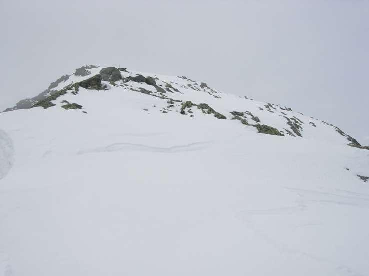 Un tratto più ripido permette di raggiungere una conca e, proseguendo lungo l’ampia dorsale, le vetta.