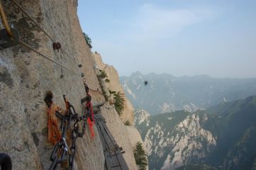 Da Huashan (fermata corriera)entrare nel tempio e seguire pedissequamente il percorso tracciato.Circa 4 h fino al picco N (arrivo ovovia,q. 1615) e altre 2h alla vetta Sud (Nan Feng).Per la ferrata al tempietto in parete, deviazione indicata (q. 2000 circa) Alcuni tratti del sentiero principale richiedono un minimo di attenzione ed abitudine al ripido. Catene su tutti i tratti esposti.Data esposizione Nord e quota (vegetazione), fattibile anche nelle ore centrali, ma può fare molto caldo.La ferrata (foto) è esposta ma facilissima.