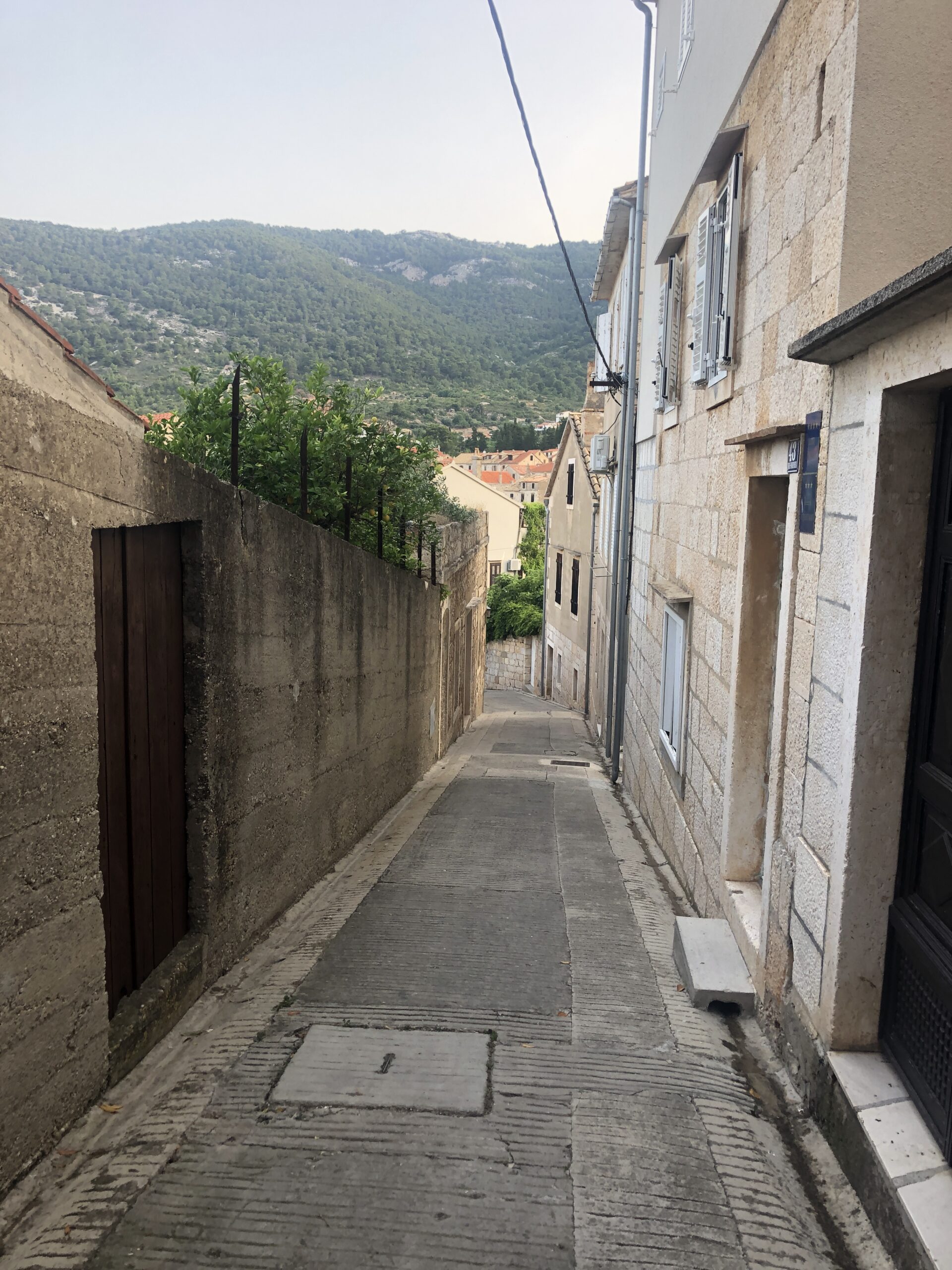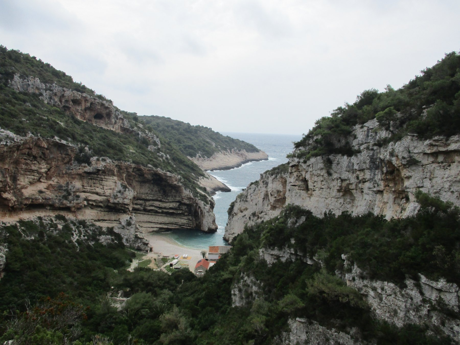 Purtroppo anche una stradina asfaltata, credo ora chiusa da una cancellata e che parte dal versante di Vis, arriva a poco dislivello dalla punta, ricordo di installazioni militari e rifugi risalenti alla WWII.