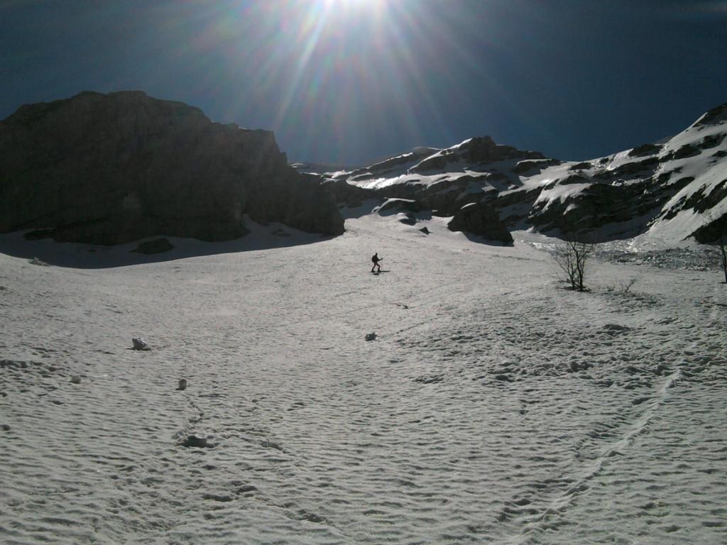 Si scende in direzione Nord-Ovest sulla dx orografica del Fosso di M.Piano fino alla regione Fossa dell’Aiola.si rimonta un pò seguendo un sentiero che in direzione Est riporta alla F.te della Moscosa.