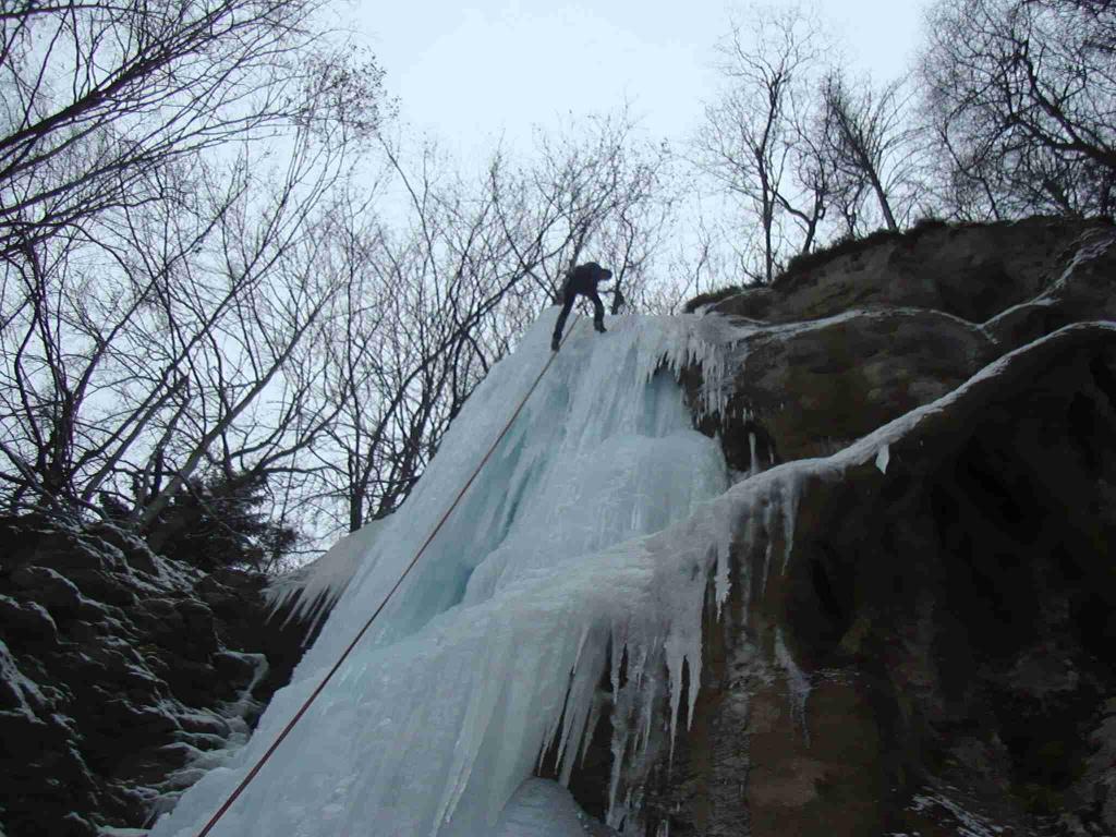 L2-Si risale la stalattite 90° poi 70/80° 45m sosta su ghiaccio.