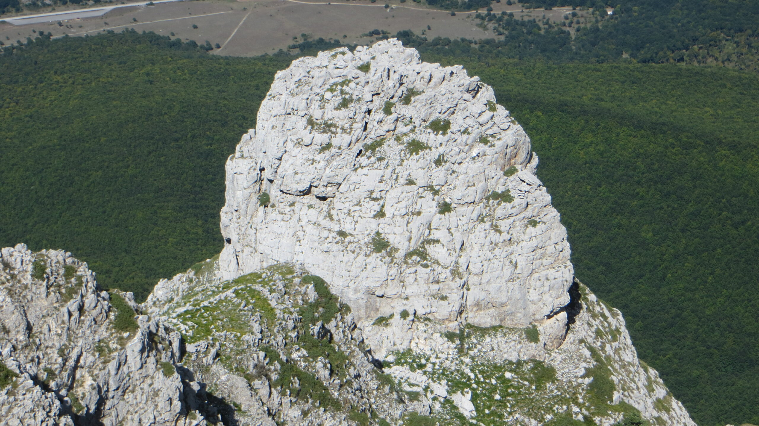 Sulla paretina c’è una corda fissa che parte a circa 3 metri dalla base: è raggiungibile salendo tra due massi (I) e poi traversando per un paio di metri su una piccola cengia esposta. Da questo punto, si supera un piccolo tratto verticale con buoni appigli (II+) e poi si sfruttano dei corridoi naturali (II), sempre abbastanza verticali, che portano alla fine delle difficoltà dove termina la corda fissa. Qui le difficoltà finiscono e si raggiunge in breve la vetta costituita da un terrazzo dove sono appoggiati grossi massi (1/2 h ; 40 metri).