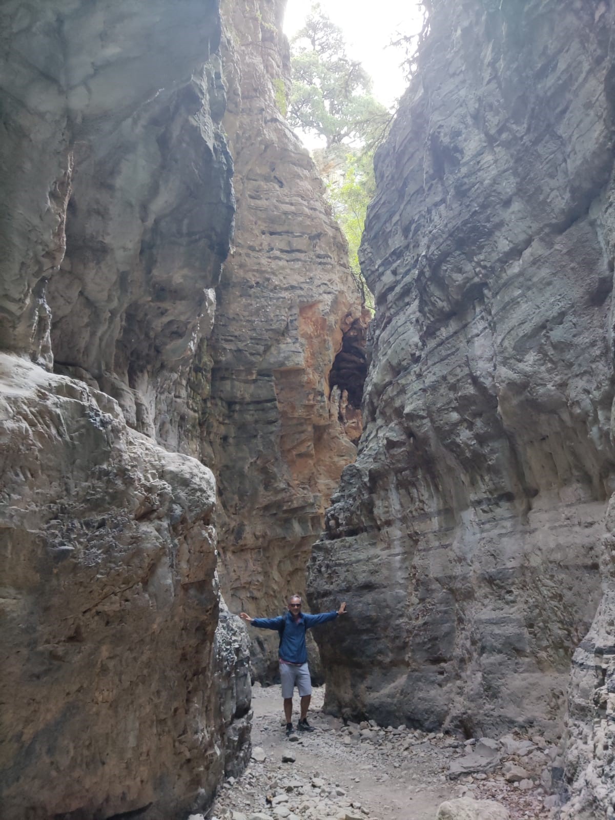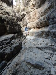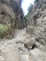 Percorso fatto in discesa quasi tutto in ombra (partiti alle h. 11 arrivati alle 13). Partiti da quota circa mt. 750 slm e arrivo a quota 160. Non ci si può sbagliare si cammina sempre sul fondo della gola su sentiero a tratti ghiaioso mai ripido, ammirando alcuni intagli nelle pareti e scenografici tronchi d’albero che crescono nella roccia, alcune pecore ci hanno tenuto compagnia nel primo tratto. Utile il venditore di bibite e ouzo a metà strada anche perchè non ci sono punti d’acqua. Confermiamo presenza in entrambe le direzioni di numerosi taxi disponibili per riportare alla partenza, noi non li abbiamo utilizzati anche perché avevamo chi ci aspettava.