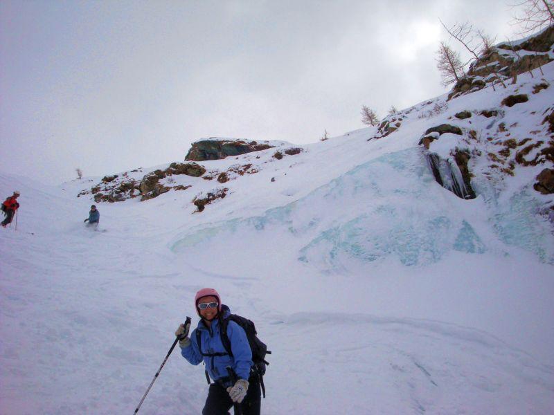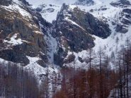 Dall’Alpe Endre percorrere la traccia di rientro verso l’Alpe Gabiet.Di fronte alle baite dell’Alpe Lavetz scendere i pendii a sx di un’evidente cascata di ghiaccio.