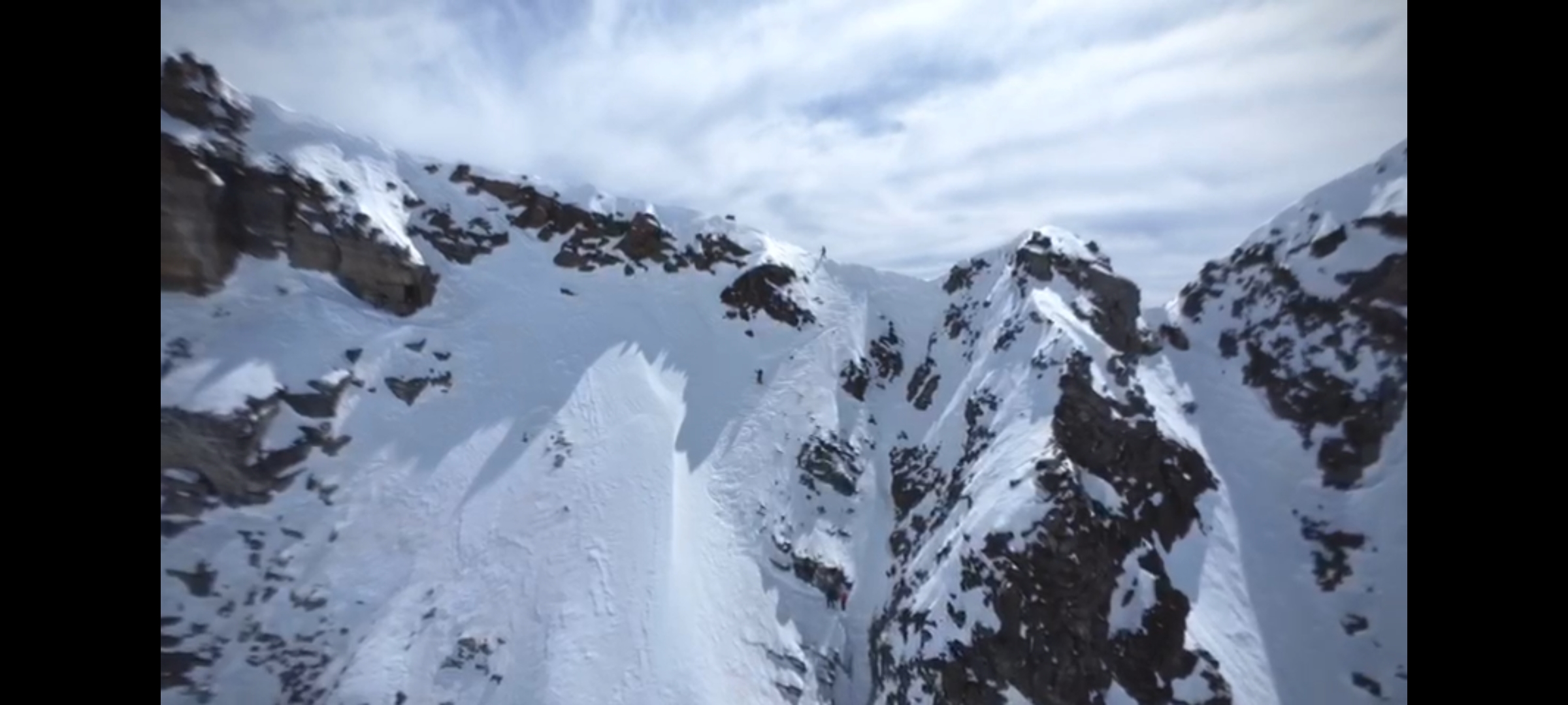 Da Indren scesi per circa 250 metri, poi ripellato verso la cresta per trovare l’ingresso del Canale delle Guide. Presente sosta a spit, ma per fare due curve in più siamo scesi (assicurati su corpo morto) poco più verso monte su pendio molto esposto ma più ampio; qualcuno ha misurato 47°. Raggiunta seconda sosta dopo 25-30 metri. Canale molto stretto, qualche curva per mero esercizio di tecnica si è potuta fare ma fondo sufficiente solo nella parte alta, poi tante rocce affioranti, meglio calarsi direttamente sci a spalle.