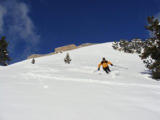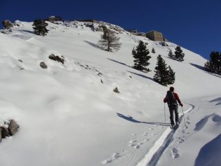 parte alta: neve polverosa, anche nel breve tratto, esposto a sud, sotto il forte;